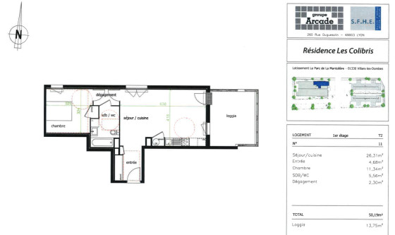 Appartement ancien 2 pièces - 50m² Villars Les Dombes (01330)