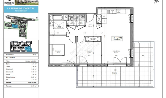 À LOUER – Superbe T3 de 63,39 m² avec terrasse de 31,76 m² proche de Genève OIKO GESTION vous propose ce magnifique T3 de 63,39 m², situé en rez-de-chaussée d'une résidence neuve et sécurisée, à seulement 7,5 km de Genève. Les atouts du bien : - Séjour avec cuisine ouverte - 2 chambres confortables, dont une avec accès à la terrasse - Salle de bain moderne + WC séparé - Grande terrasse de 31,76 m², accessible depuis le séjour et une chambre - Un box simple en sous-sol + une place de stationnement extérieure - Chauffage et eau chaude individuels La résidence "La Ferme de l'Hôpital" - Résidence neuve et sécurisée avec espaces verts partagés - 7 bâtiments à taille humaine (2 étages max avec ascenseur) - Parking en sous-sol et local à vélos Emplacement idéal à proximité de Genève, parfait pour les travailleurs transfrontaliers ! N'hésitez pas à nous contacter pour plus d'informations ou organiser une visite ! Les informations sur les risques sont disponibles sur le site Géorisques : www.georisques.gouv.fr