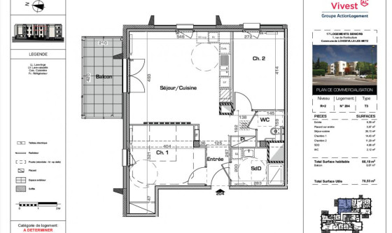 Appartement neuf 3 pièces - 66m² Longeville Les Metz (57050)