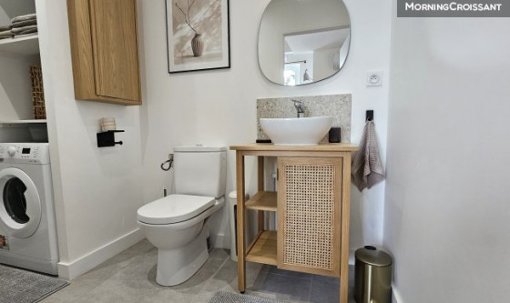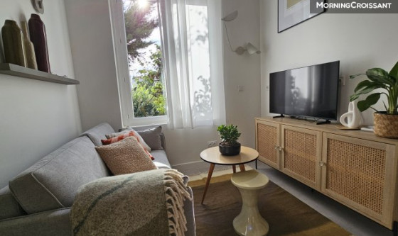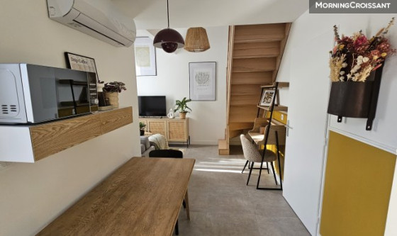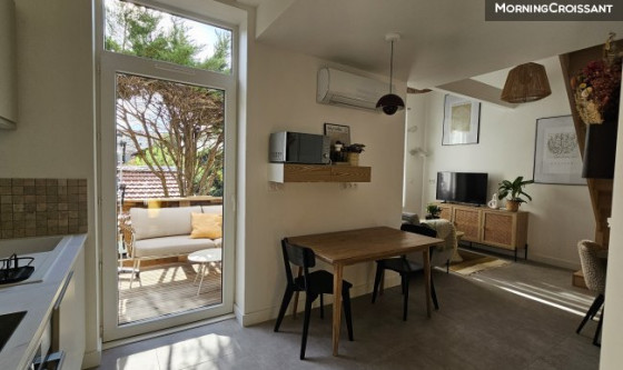 Appartement charmant de 37 m² entièrement rénové en 2024, avec terrasse et climatisation. Situé au 1er étage d'une maison calme, donnant sur une cour privative. Une chambre, décoration soignée, très lumineux et parfaitement équipé pour un séjour confortable et reposant. Bienvenue dans ce très joli appartement de 37 m², entièrement rénové à neuf en 2024, situé au 1er étage d'une belle maison divisée en trois logements indépendants, tous gérés avec soin par notre agence. Le logement : Profitez d'un espace lumineux, confortable et décoré avec goût, idéal pour un séjour paisible en couple ou en solo. L'appartement se compose : D'une chambre séparée avec lit double et literie de qualité D'un salon cosy ouvert sur une cuisine équipée (plaques, micro-ondes, cafetière, bouilloire, vaisselle…) D'une salle de bain moderne avec douche D'une terrasse privative, parfaite pour vos repas en plein air ou moments de détente Climatisation réversible pour un confort optimal en toute saison. L'appartement donne sur une cour intérieure privative, garantissant un calme absolu, à l'abri des bruits de la rue. Situation : Situé dans un quartier résidentiel agréable, vous êtes à proximité des commodités et des transports, tout en bénéficiant d'un environnement serein et reposant. Services inclus : Linge de lit et serviettes fournis, Wi-Fi, produits d'accueil.
