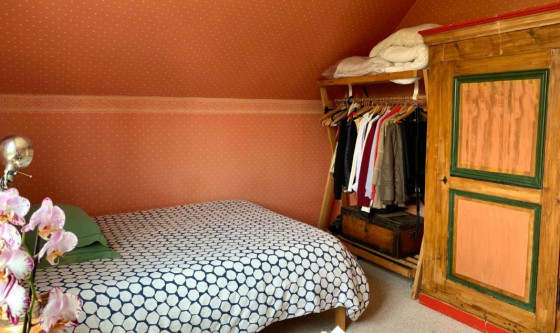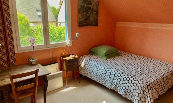 Chambre au 1er étage de12 M2, fenêtre sur jardin exposé sud, possibilité de se servir de la cuisine et une étagère dans le réfrigérateur. Place de vélo dans un garage. Updated on 18/11/2025 Mise à jour le 18/11/2025