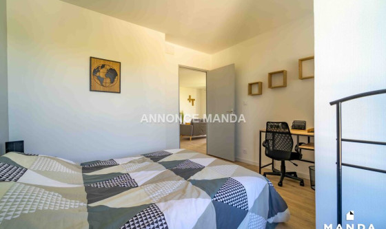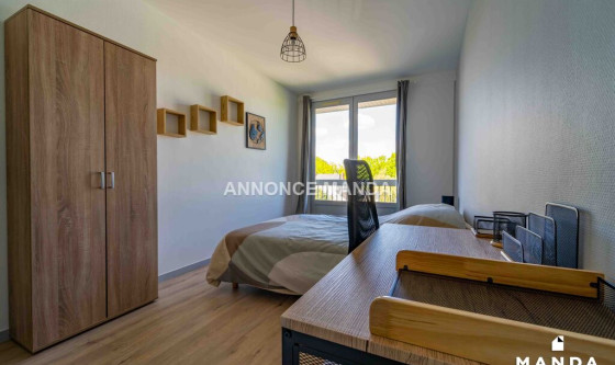 Logement Manda ! Située à Angers, cette chambre à louer dans une colocation se trouve rue César Geoffray. Le logement est à quelques minutes à pied du campus ESA/catho et dispose d'une terrasse. Internet ultra rapide, eau chaude, chauffage et électricité sont inclus dans les charges. Le logement est éligible aux APLs. La chambre concernée par cette location se compose d'un lit double, d'un bureau et d'une armoire. Les parties communes se compose d'un grand séjour convivial donnant accès à la terrasse. La cuisine est séparée et équipée, et vous disposerez de deux salles de bains avec cabine de douche. Il est possible de louer un garage couvert (box) en supplément. Cette superbe chambre dans une colocation n'attend plus que vous ! Référence du bien : MANDA-28045
