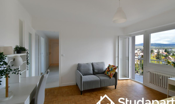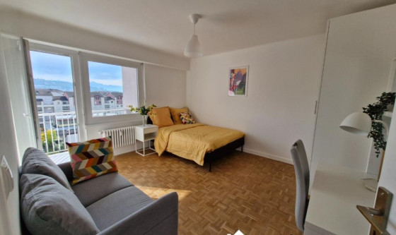 2 chambre(s) libre(s) dans une colocation de 2 chambres dans un appartment de 66m2 Appartement meublé de 3 chambres à Annemasse avec vue sur les montagnes et balcon - 6ème étage très lumineux avec ascenseur. Chambres haut de gamme en hyper centre dans appartement entièrement rénové au cœur de la ville Annemasse, idéal pour les personnes travaillant à Genève. - Proche de tous commerces - a 10mn du Parc Montessuit et arrêt de tram (ligne 17 vers Genève). - 3 mn à pied de la gare CEVA. Chambres lumineuses avec un bureau, un lit, une penderie. Un accès à un balcon partagé avec une autre chambre possible selon la chambre. LES ESPACES COMMUNS Cuisine entièrement équipée et fonctionnelle : plaques de cuisson, four, four à micro-ondes, air fryer, hotte, rangements, frigidaire, lave-linge et lave vaisselle, machine à café Nespresso etc. 1 salle de bains (douche italienne) et 1 WC viennent compléter ce bien. SERVICES Linge de maison fournis EDF, eau et chauffage compris Internet : fibre Femme de ménage : passages réguliers (2 à 4 fois par mois) Updated on 30/12/2025 Mise à jour le 30/12/2025