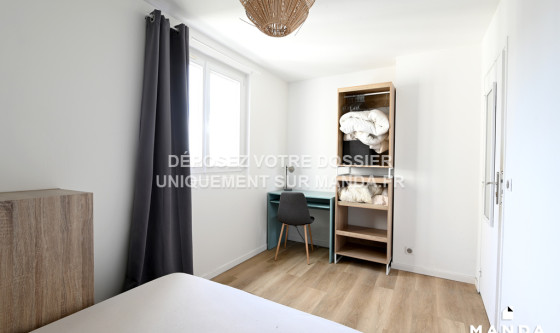 Logement Manda ! Visitez et déposez votre dossier uniquement sur notre plateforme ! Nous ne vous enverrons jamais le bail ou le RIB par mail - tout est sécurisé sur notre plateforme. Située à Aubervilliers, à proximité immédiate du métro Aimé Césaire, cette agréable chambre à louer dans une colocation conviviale vous offre un cadre de vie pratique et confortable. Le logement bénéficie d'un emplacement idéal, proche de toutes les commodités (commerces, transports, services…). Internet, eau chaude, chauffage et électricité sont inclus dans les charges, et le logement est éligible aux APL. La chambre Entièrement meublée, elle comprend : • un lit double, • un bureau pour vos études ou le télétravail, • une armoire de rangement. Les parties communes Vous profiterez d'un grand séjour lumineux et convivial, parfait pour partager des moments entre colocataires. La cuisine séparée et équipée met à votre disposition tout le nécessaire pour cuisiner au quotidien. La salle de bain commune dispose d'une cabine de douche moderne. Cette chambre confortable et fonctionnelle n'attend plus que vous ! Encadrement des loyers – Zone réglementée (Aubervilliers) • Loyer de base : 9,40 €/m² • Loyer de référence majoré (à ne pas dépasser) : 11,30 €/m² • Complément de loyer : 372,54 € Pour rappel, cet appartement est situé dans une zone soumise à encadrement des loyers. Loyer de base : 89,39€ Loyer de référence majoré (Loyer de base à ne pas dépasser) : 107,46€ Complément de loyer : 372,54€ VOUS POUVEZ VISITER PLUS DE 3 000 LOGEMENTS (visite virtuelle + vidéos) ET DÉPOSER VOTRE CANDIDATURE SUR LE SITE WEB MANDA (REF : MANDA-51812) Référence du bien : MANDA-51812