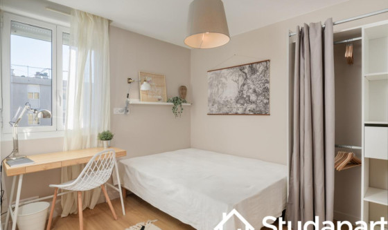 1 chambre(s) libre(s) dans une colocation de 1 chambres dans un appartment de 70m2 Bel appartement de 4 chambres entièrement rénové, équipé et décoré avec goût ! Situé Résidence Maurice Thorez à Bègles, à proximité immédiate des transports en communs (tramway ligne C - Gare de Bègles) ainsi que de plusieurs commerces. L'appartement se compose de 4 chambres de type suite parentale, chacune disposant de sa propre salle d'eau privative, d'une TV à écran plat, un lit double, un bureau et des rangements. Le salon dispose d'un grand écran TV ainsi que d'une enceinte JBL, le tout donnant sur un agréable petit balcon aménagé. La cuisine ouverte est entièrement aménagée et équipée avec un réfrigérateur/congélateur, un four, une machine à café Nespresso, un micro-ondes, ainsi que tous les éléments nécessaires de vaisselle. Vous y trouverez également tout le nécessaire de ménage, lave-linge/sèche linge.. Informations complémentaires : - Garantie VISALE acceptée - Garantie STUDAPART acceptée - Eligible aux APL - Pas de solidarité entre les colocataires - DPE : consommation énergétique classe D emission de gaz à effet de serre classe D Venez découvrir la visite virtuelle de cet appartement sans tarder ! Updated on 09/12/2025 Mise à jour le 09/12/2025