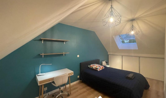 2 chambre(s) libre(s) dans une colocation de 2 chambres dans une maison de 127m2 Dans une maison rénovée, située dans un quartier très calme, nous proposons une chambre à louer en rez-de chaussée. La maison est idéalement située à deux pas du bus et des commodités. La salle de bainest commune avec une autre chambre. Le séjour /cuisine est commun avec 4 chambres. La chambre est équipée d'un placard, d'un bureau, lit en 160X200, table et lampe de chevet, lampe de bureau. La chambre à louer offre une belle pièce de vie avec une cuisine neuve ouverte sur le séjour. La cuisine est entièrement équipée avec réfrigérateur, four, micro-ondes, cafetière, bouilloire, plaque à induction, hotte, lave-vaisselle, vaisselle et ustensiles de cuisine. Une longue table bar avec des chaises de bar confortables sépare le séjour lumineux. Une porte-fenêtre donne accès à un grand jardin à l'arrière de la maison, sans vis-à-vis, avec une terrasse pour profiter des beaux jours. La maison dispose de 3 emplacements de parking et la rue offre de nombreuses possibilités pour se garer. Updated on 22/02/2026 Le propriétaire de ce bien utilise Studapart pour louer son logement en toute sécurité. Comment ça marche ? Vous recevez un email Studapart et cliquez sur le lien de l'annonce. Vous créez votre compte Studapart et envoyez votre candidature (dossier + message) sans aucun frais. Si votre profil est retenu, vous pourrez faire une demande de réservation. Les frais Studapart ne sont débités qu'en cas de confirmation de réservation afin de vous garantir une location 100% sécurisée. Mise à jour le 22/02/2026
