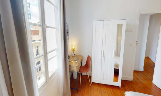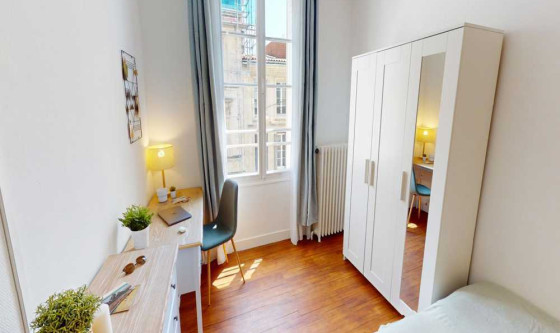 3 chambre(s) libre(s) dans une colocation de 3 chambres dans un appartment de 170m2 35.00€ de réduction pour les 2 premiers mois Colocation meublée ! -------------------------------- Tous nos appartements sont situés en centre-ville et proches de toutes commodités et transports en communs (Métro, Tramway et Bus). --------- Cette superbe chambre en colocation, meublée, équipée et tout inclus à Bordeaux unit confort et design. Elle offre de nombreux équipements comme un lit confortable et hypoallergénique avec couette et oreillers. Ne vous manque plus à apporter que vos vêtements pour y vivre ! La chambre possède un cadenas si besoin. Le logement est localisé dans le quartier Chartrons - Grand Parc, en plein coeur de Bordeaux. De nombreux commerces, transports publics, restaurants sont situés à proximité. La colocation est à l'étage 0 sans ascenseur. Elle est prête-à-vivre et propose une cuisine complètement équipée avec frigo, poêles, casseroles, vaisselle, bouilloire, ustensiles, micro-ondes… Ainsi que lave-linge, tancarville, fer à repasser, planche à repasser. Tout le nécessaire pour le ménage est sur place au sein de cette colocation : balai, balai-brosse, aspirateur, seau et serpillère… Chaque colocation meublée Joivy inclut toutes les charges : eau, assurance habitation, charges de copropriété, taxe sur les ordures, wifi illimité, électricité. Toutes nos chambres sont entièrement meublées (lit, bureau, penderie, couette, oreillers…). --------- Tous nos appartements sont entièrement équipés (lave-linge, vaisselle, décoration…) par nos équipes, qui se chargent également de la maintenance technique et matérielle. --------- Durée minimum de séjour : 1 mois Appartement éligible à la CAF jusqu'à 258€ / mois. La CAF pour Caisse d'allocations familiales est un service public gratuit et français éligible pour tous,y compris les étranger et qui peut vous aider financièrement à payer une partie de votre logement en fonction de votre situation que vous soyez français ou étranger. Pour connaître le montant potentiel de votre aide, rendez-vous sur le site de CAF et complétez l'estimation en ligne des APL (aide pour le logement). Frais de services : à partir de 390€ Les frais de services couvrent l'écriture du bail mais également l'assistance tout au long de votre séjour. Les frais de services couvrent ainsi la réparation et l'entretien du matériel ainsi que l'accès à notre support ultra réactif en cas de besoin d'intervention dans votre logement. Caution : 900€ --------- Nous accueillons principalement des étudiants ou des jeunes actifs français ou étrangers de 18 à 35 ans. Notre objectif est de faciliter l'accès à un logement meublé et parfaitement équipé et de vous permettre de faire de belles rencontres. Nos locataires sont de toute origine et toute culture ! Updated on 11/11/2025 Mise à jour le 11/11/2025