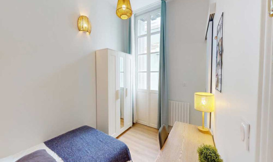 1 chambre(s) libre(s) dans une colocation de 1 chambres dans un appartment de 120m2 40.00€ de réduction pour les 2 premiers mois Colocation meublée ! -------------------------------- Tous nos appartements sont situés en centre-ville et proches de toutes commodités et transports en communs (Métro, Tramway et Bus). --------- Cette superbe chambre en colocation, meublée, équipée et tout inclus à Bordeaux unit confort et design. Elle offre de nombreux équipements comme un lit confortable et hypoallergénique avec couette et oreillers. Ne vous manque plus à apporter que vos vêtements pour y vivre ! La chambre possède un cadenas si besoin. Le logement est localisé dans le quartier Gare St Jean, en plein coeur de Bordeaux. De nombreux commerces, transports publics, restaurants sont situés à proximité. La colocation est à l'étage 1 sans ascenseur. Elle est prête-à-vivre et propose une cuisine complètement équipée avec frigo, poêles, casseroles, vaisselle, bouilloire, ustensiles, micro-ondes… Ainsi que lave-linge, tancarville, fer à repasser, planche à repasser. Tout le nécessaire pour le ménage est sur place au sein de cette colocation : balai, balai-brosse, aspirateur, seau et serpillère… Chaque colocation meublée Joivy inclut toutes les charges : eau, assurance habitation, charges de copropriété, taxe sur les ordures, wifi illimité, électricité. Toutes nos chambres sont entièrement meublées (lit, bureau, penderie, couette, oreillers…). --------- Tous nos appartements sont entièrement équipés (lave-linge, vaisselle, décoration…) par nos équipes, qui se chargent également de la maintenance technique et matérielle. --------- Durée minimum de séjour : 1 mois Appartement éligible à la CAF jusqu'à 258€ / mois. La CAF pour Caisse d'allocations familiales est un service public gratuit et français éligible pour tous,y compris les étranger et qui peut vous aider financièrement à payer une partie de votre logement en fonction de votre situation que vous soyez français ou étranger. Pour connaître le montant potentiel de votre aide, rendez-vous sur le site de CAF et complétez l'estimation en ligne des APL (aide pour le logement). Frais de services : à partir de 390€ Les frais de services couvrent l'écriture du bail mais également l'assistance tout au long de votre séjour. Les frais de services couvrent ainsi la réparation et l'entretien du matériel ainsi que l'accès à notre support ultra réactif en cas de besoin d'intervention dans votre logement. Caution : 900€ --------- Nous accueillons principalement des étudiants ou des jeunes actifs français ou étrangers de 18 à 35 ans. Notre objectif est de faciliter l'accès à un logement meublé et parfaitement équipé et de vous permettre de faire de belles rencontres. Nos locataires sont de toute origine et toute culture ! Updated on 18/11/2025 Mise à jour le 18/11/2025
