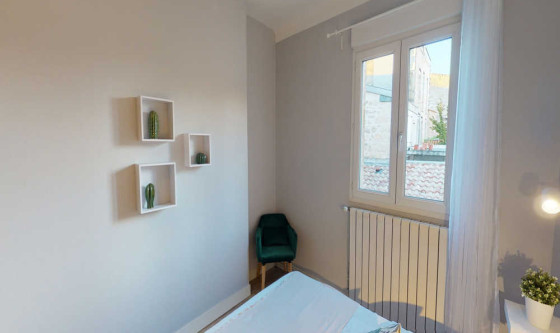 5 chambre(s) libre(s) dans une colocation de 5 chambres dans un appartment de 120m2 110.00€ de réduction pour les 6 premiers mois Colocation meublée ! -------------------------------- Tous nos appartements sont situés en centre-ville et proches de toutes commodités et transports en communs (Métro, Tramway et Bus). --------- Cette superbe chambre en colocation, meublée, équipée et tout inclus à Bordeaux unit confort et design. Elle offre de nombreux équipements comme un lit confortable et hypoallergénique avec couette et oreillers. Ne vous manque plus à apporter que vos vêtements pour y vivre ! La chambre possède un cadenas si besoin. Le logement est localisé dans le quartier Capucins - Victoire, en plein coeur de Bordeaux. De nombreux commerces, transports publics, restaurants sont situés à proximité. La colocation est à l'étage 0 sans ascenseur. Elle est prête-à-vivre et propose une cuisine complètement équipée avec frigo, poêles, casseroles, vaisselle, bouilloire, ustensiles, micro-ondes… Ainsi que lave-linge, tancarville, fer à repasser, planche à repasser. Tout le nécessaire pour le ménage est sur place au sein de cette colocation : balai, balai-brosse, aspirateur, seau et serpillère… Chaque colocation meublée Joivy inclut toutes les charges : eau, assurance habitation, charges de copropriété, taxe sur les ordures, wifi illimité, électricité. Toutes nos chambres sont entièrement meublées (lit, bureau, penderie, couette, oreillers…). --------- Tous nos appartements sont entièrement équipés (lave-linge, vaisselle, décoration…) par nos équipes, qui se chargent également de la maintenance technique et matérielle. --------- Durée minimum de séjour : 1 mois Appartement éligible à la CAF jusqu'à 258€ / mois. La CAF pour Caisse d'allocations familiales est un service public gratuit et français éligible pour tous,y compris les étranger et qui peut vous aider financièrement à payer une partie de votre logement en fonction de votre situation que vous soyez français ou étranger. Pour connaître le montant potentiel de votre aide, rendez-vous sur le site de CAF et complétez l'estimation en ligne des APL (aide pour le logement). Frais de services : à partir de 390€ Les frais de services couvrent l'écriture du bail mais également l'assistance tout au long de votre séjour. Les frais de services couvrent ainsi la réparation et l'entretien du matériel ainsi que l'accès à notre support ultra réactif en cas de besoin d'intervention dans votre logement. Caution : 900€ --------- Nous accueillons principalement des étudiants ou des jeunes actifs français ou étrangers de 18 à 35 ans. Notre objectif est de faciliter l'accès à un logement meublé et parfaitement équipé et de vous permettre de faire de belles rencontres. Nos locataires sont de toute origine et toute culture ! Updated on 19/11/2025 Mise à jour le 19/11/2025