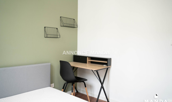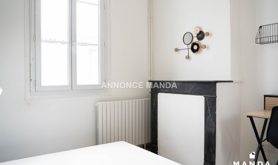 Logement Manda ! L'agence Manda vous propose cette jolie chambre en colocation meublée, située à Bordeaux. Les parties communes sont composées du séjour avec canapé et écran plat, de la cuisine ouverte équipée et de la salle d'eau avec baignoire. La chambre concernée est équipée d'un lit double et d'un bureau. Idéalement situé dans un quartier résidentiel paisible et bien desservi, le logement est à proximité des commerces, des écoles et des transports en commun. Disponible immédiatement, cette jolie colocation n'attend que vous ! Pour rappel, cet appartement est situé dans une zone soumise à encadrement des loyers. Loyer de base : 319,5€ Loyer de référence majoré (Loyer de base à ne pas dépasser) : 384,0€ Complément de loyer : 168,0€ Référence du bien : MANDA-63856