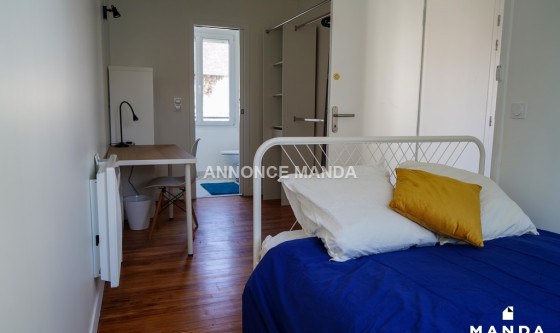 Logement Manda ! Manda vous propose une chambre entièrement refaite à neuf, meublée et équipée, située au rez-de-chaussée d'un immeuble de la rue Général de Sonis. Un logement pratique, moderne et idéal pour étudiant ou jeune actif. Espace nuit confortable • Lit double • Bureau • Grand rangement intégré Salle de bain privative • Douche • WC • Espace moderne et fonctionnel Parties communes à partager • Cuisine ouverte entièrement équipée • Séjour convivial avec canapé convertible, TV, table et chaises Localisation idéale • À 5 minutes à pied de l'UBO • Bus et commerces à proximité immédiate • Centre-ville accessible en 20 minutes en bus Disponible immédiatement Prête à vivre Référence du bien : MANDA-11201
