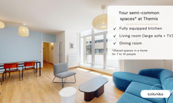 Avec IMMOJEUNE, trouvez les meilleurs logements étudiants et jeunes actifs en quelques clics et en toute confiance. Chambre disponible à partir du 04/11/2025 Louez votre chambre privée à partir de 810€/mois Quelques informations essentielles sur Themis 7 : - Située à Cergy, au 2 place de la pergola - Résidence de coliving de 2120 m² - 11 chambres privées - Espaces communs : salon, salle à manger, cuisine - Rénové, meublé, équipé - Charges comprises (eau, électricité, gaz, internet) - Service de support et de maintenance Idéalement desservie, cette colocation permet de rejoindre Cergy et ses pôles d'activité en un rien de temps. Unités disponibles : - Studio S 502, 17m², salle de bain privée, 810€ Bienvenue chez vous ! #REF:498# Mis à jour le 04/10/2025 Updated on 04/10/2025