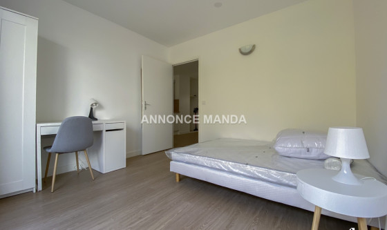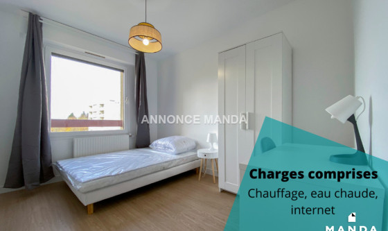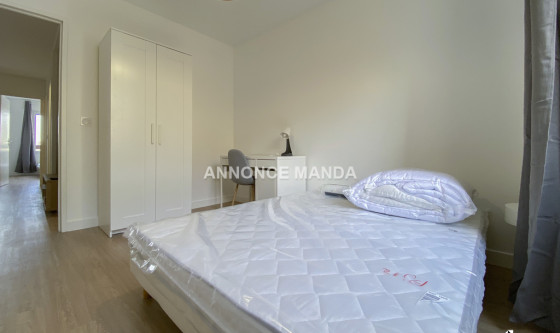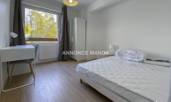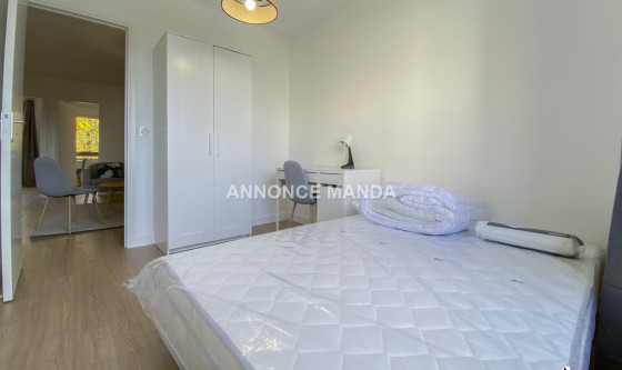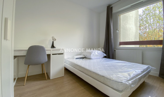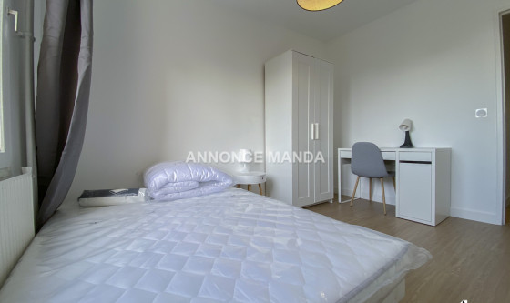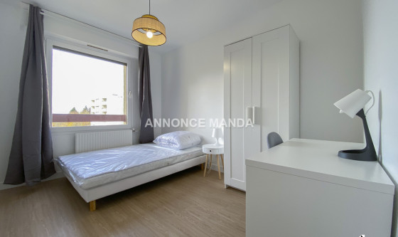Logement Manda ! A proximité de la gare de la Préfecture de Cergy, Manda propose une chambre à louer dans une colocation rue de la Justice Orange. Situé au deuxième étage avec ascenseur, ce grand appartement se partage entre cinq colocataires. La chambre concernée par cette location est la première de visitée dans la visite virtuelle. Elle se compose d'un lit double, d'un bureau, d'une armoire à dressing et d'une fenêtre. Les parties communes sont : L'entrée, Le séjour, spacieux et lumineux avec une partie salle à manger et une partie salon, La cuisine ouverte et entièrement équipée, qui dispose d'une ouverture sur balcon, Les deux salles de bain (dont une avec WC) disposant chacune d'une cabine de douche, d'un meuble-vasque et d'un sèche-serviettes chauffant, Les WC séparés. Très belles prestations pour cette chambre à louer dans une colocation : logement en parfait état, idéalement agencé pour la colocation, rangements, entièrement meublé et équipé, clair et lumineux, calme... Situé à proximité du centre-ville de Cergy, vous serez à quelques minutes de tous les commerces et du quartier universitaire. Idéal pour étudiant(e), n'attendez plus pour déposer votre candidature ! Référence du bien : MANDA-18265