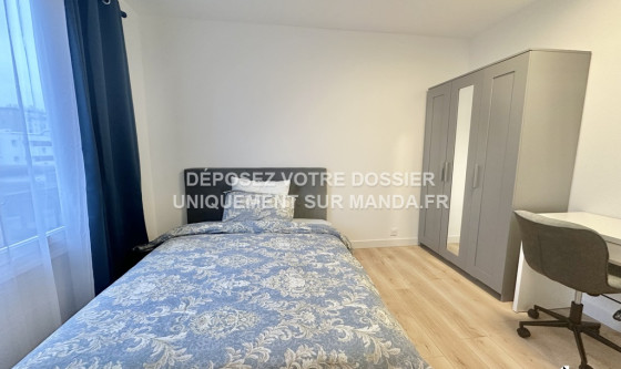 Logement Manda ! Visitez et déposez votre dossier uniquement sur notre plateforme ! Nous ne vous enverrons jamais le bail ou le RIB par mail - tout est sécurisé sur notre plateforme. Chambre meublée à louer dans une colocation rénovée à Chelles. L'agence Manda vous propose cette jolie chambre au sein d'un appartement entièrement refait à neuf, pensé pour le confort des étudiants et jeunes actifs. La chambre, équipée de mobilier neuf, comprend un lit double, un bureau et un écran plat. Les espaces communs offrent un cadre convivial avec séjour lumineux (canapé, table à manger, TV), cuisine équipée et salle d'eau moderne avec douche. Située dans un quartier calme et bien desservi, la colocation est proche des commerces, écoles et transports. Un lieu de vie agréable, moderne et tout confort idéal pour s'installer sereinement à Chelles. VOUS POUVEZ VISITER PLUS DE 3 000 LOGEMENTS (visite virtuelle + vidéos) ET DÉPOSER VOTRE CANDIDATURE SUR LE SITE WEB MANDA (REF : MANDA-70417) Référence du bien : MANDA-70417