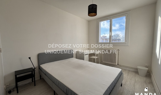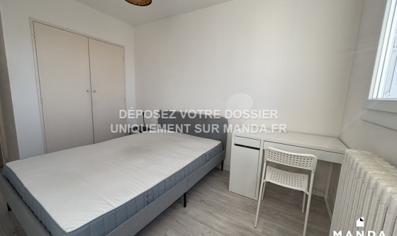 Logement Manda ! Visitez et déposez votre dossier uniquement sur notre plateforme ! Nous ne vous enverrons jamais le bail ou le RIB par mail - tout est sécurisé sur notre plateforme. L'agence Manda vous propose cette jolie chambre en colocation meublée, située à Colomiers, dans un appartement traversant, moderne et lumineux. Vous disposerez également d'une place de parking et d'une cave. Les parties communes sont composées du séjour avec canapé et écran plat, de la cuisine équipée et de la salle d'eau avec douche. La chambre concernée est équipée d'un lit double. Idéalement situé dans un quartier résidentiel paisible et bien desservi, le logement est à proximité des commerces, des écoles et des transports en commun. Disponible immédiatement, cette jolie colocation n'attend que vous ! VOUS POUVEZ VISITER PLUS DE 3 000 LOGEMENTS (visite virtuelle + vidéos) ET DÉPOSER VOTRE CANDIDATURE SUR LE SITE WEB MANDA (REF : MANDA-71753) Référence du bien : MANDA-71753