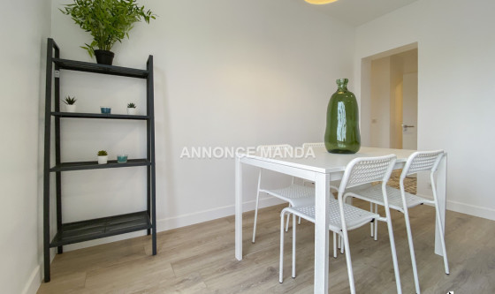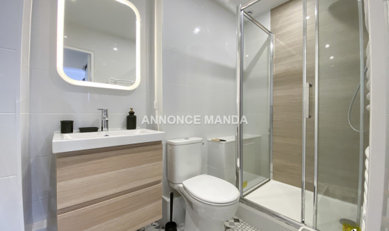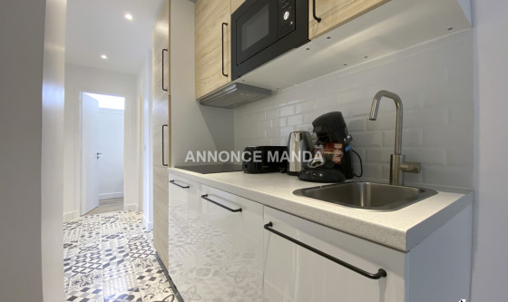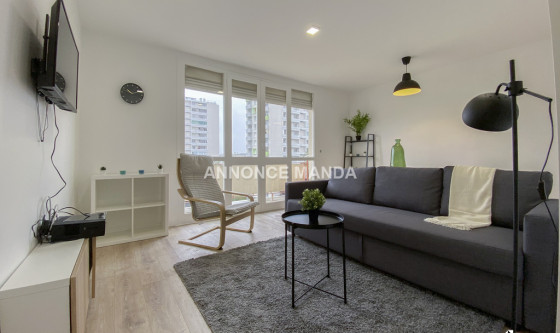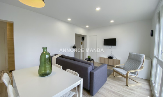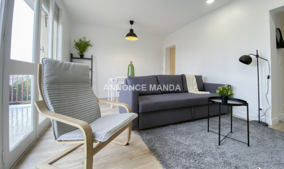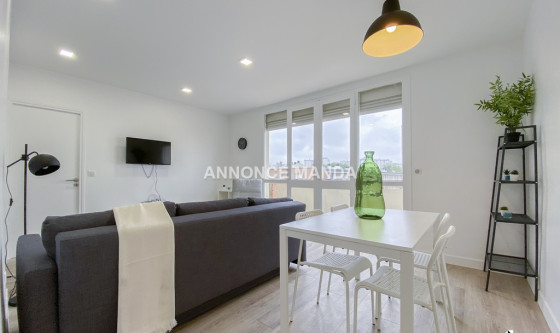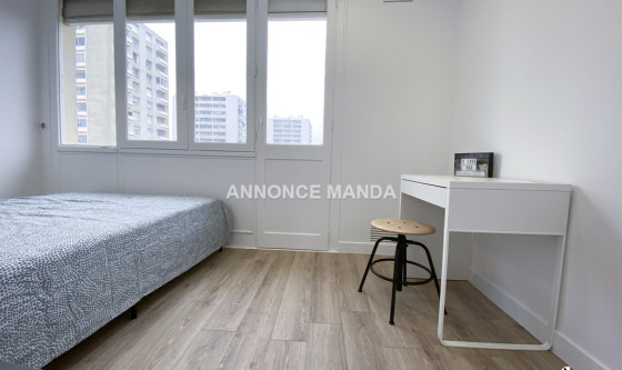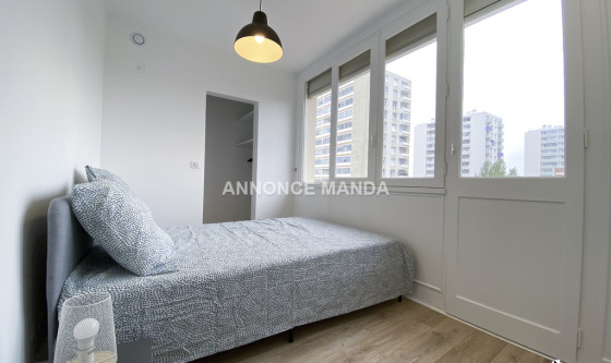 Logement Manda ! A moins de 10 minutes du métro Créteil-Préfecture, Manda propose une chambre à louer dans une colocation rue Pierre Lescot. Situé au 4ème étage sans ascenseur, elle se trouve dans un très joli 5 pièces meublé et refait à neuf. La chambre concernée par cette location est composée d'un lit double, d'une table de nuit et sa lampe de chevet, d'un bureau et son tabouret, d'une armoire à penderie et d'un coin dressing avec penderie et étagères. La fenêtre donne sur la zone résidentielle de l'immeuble. Il s'agit de la chambre du haut sur le plan, au dessus du salon. Les parties communes à cette colocation sont : Une entrée avec plusieurs placards à chaussures, Le séjour aménagé en deux parties avec un coin salon composé d'un canapé 3 places convertibles, un tapis, une table basse, un meuble télé, un écran plat mural, un fauteuil, des étagères métalliques. Le coin salle à manger dispose d'une table et ses 4 chaises. La porte-fenêtre de la pièce principale est grande et donne accès à un large balcon avec vue sur la résidence. La cuisine est en longueur et toute équipée : plaques de cuisson, hotte, évier simple, machine à café, bouilloire, grille pain, réfrigérateur et congélateur, lave-vaisselle, lave-linge et de nombreux placards et tiroirs avec vaisselle. Deux salles de bain identiques sont à disposition : vasque simple montée sur tiroirs de rangement, miroir lumineux, cabine de douche, sèche serviettes. L'une d'entre elles dispose, en plus, de WC. Les WC séparés sont accessibles dans l'entrée. Le parking est gratuit devant la résidence. Très belles prestations pour cette chambre à louer dans une colocation : appartement refait à neuf, très belle décoration, bien agencé, lumineux, équipement de qualité... L'Internet et le chauffage sont compris dans le loyer. Le métro ligne 8 ainsi que les bus sont à moins de 10 minutes à pieds, tout comme le centre commercial Créteil Soleil et les commerces de proximité sont à deux pas. Idéal pour une personne seule ou un(e) étudiant(e), n'attendez plus pour déposer votre dossier ! Référence du bien : MANDA-07158
