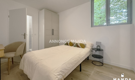 Logement Manda ! L'agence Manda vous propose cette jolie chambre en colocation meublée, située à Évry. Les parties communes sont composées du séjour avec canapé et table à manger, de la cuisine ouverte équipée et de la salle d'eau avec douche. La chambre concernée est équipée d'un lit double et d'un bureau. Idéalement situé dans un quartier résidentiel paisible et bien desservi, le logement est à proximité des commerces, des écoles et des transports en commun. Disponible immédiatement, cette jolie colocation n'attend que vous ! Référence du bien : MANDA-63680