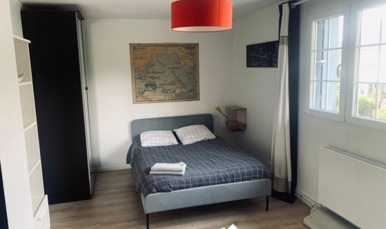 Située à l'étage du pavillon, la chambre de 20m2 offre un lit double, des rangements, un bureau et beaucoup de lumière. La salle de bain fait 14 m2 en accès partagé avec 2 autres adultes. Vous avez accès à la maison entière (salle à manger, cuisine, salon, tv), le wifi est compris Nous avons 2 chats. Soyez le/la bienvenu(e)! Updated on 18/11/2025 Mise à jour le 18/11/2025