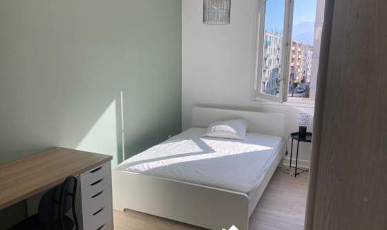 2 chambre(s) libre(s) dans une colocation de 2 chambres dans un appartment de 82m2 Le logement se compose d'un cuisine, d'une grande pièce de vie, de 2 salles d'eau, d'un WC indépendant, ainsi que de 4 chambres. Chambres équipées avec lit 140x200, bureau,chaise, penderie, table de chevet, lumiere. WC séparé, 2 salles de bain avec douche ( 1 salle de bain est privé pour la chambre 2). Pièce de vie avec cuisine ouverte complétement équipée (four, plaque, micro-onde, frigo, lave-vaiselle, lave-linge). Salon équipé avec canapé et TV et grande table pour manger. Balcon. Proche GEM et IUT1 Superficie Chambre1: Occupée Superficie Chambre2: avec salle de bain privée (douche et lavabo): occupée Superficier Chambre3: occuée Superficie Chambre4: libre En bas de l'immeuble se trouve l'arrêt du tramway Vallier-Catane desservi par la ligne C. Beaucoup de commerces à proximité. L'appartement est calme car les fenêtres ne donnent pas sur le boulevard. Eau / Elec / Chauffage/ Internet sont compris dans les charges. 2 mois loyer caution Updated on 18/10/2025 Mise à jour le 18/10/2025