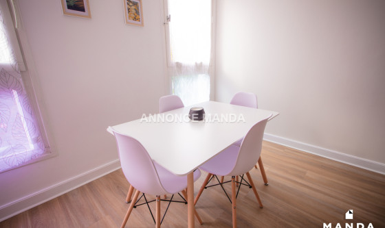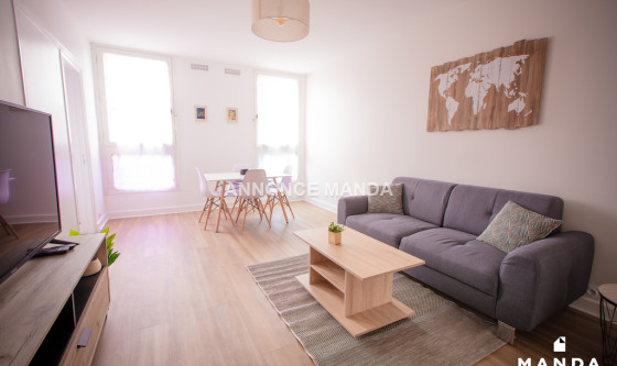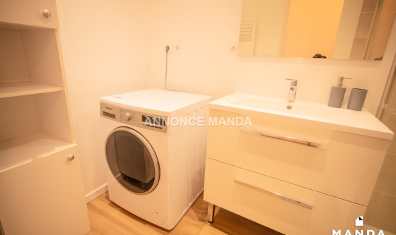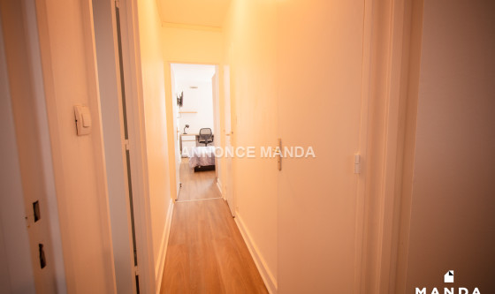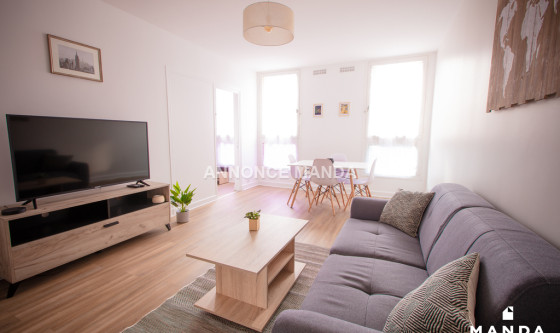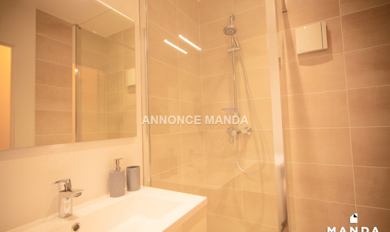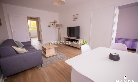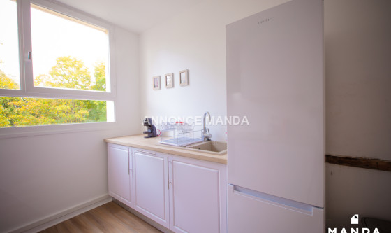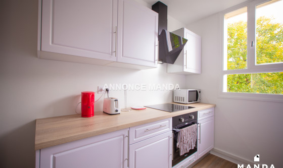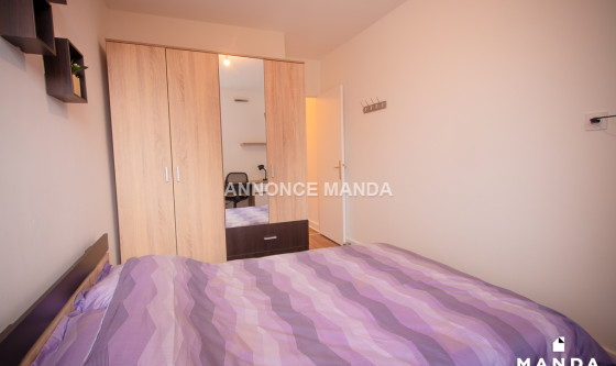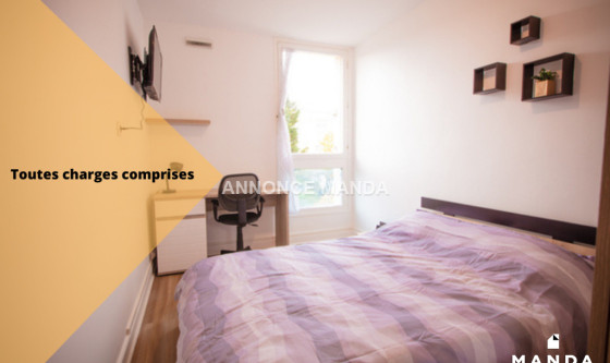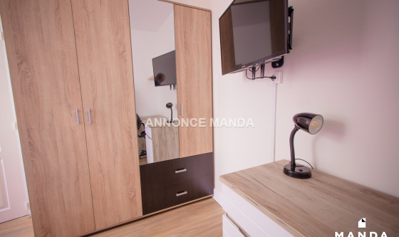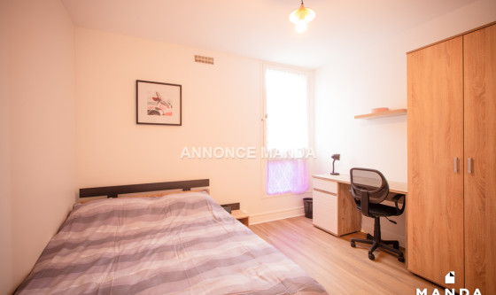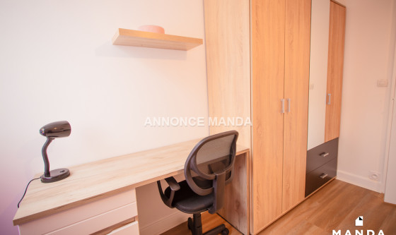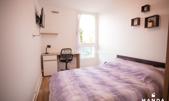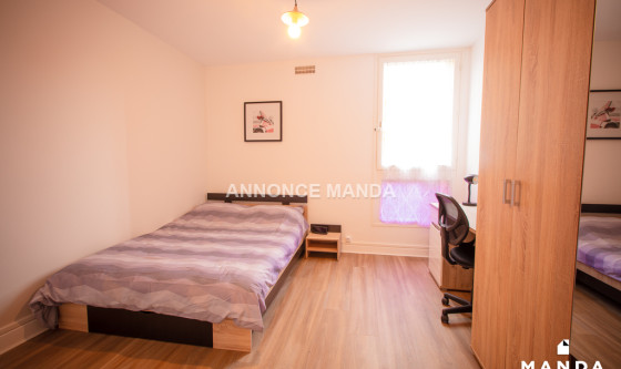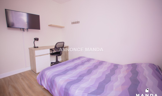 Logement Manda ! Située dans le quartier Grande Delle, à deux pas du centre commercial d'Hérouville, Manda vous propose une chambre à louer dans une colocation entièrement refaite à neuf, au sein d'une résidence calme et bien entretenue. La chambre La chambre proposée (première présentée dans la visite virtuelle) comprend : • Un lit double, • Un bureau avec chaise, • Une TV murale, • Un meuble dressing. Les parties communes • Entrée : placard de rangement pratique. • Salon spacieux et lumineux : canapé, table basse, TV avec meuble, table à manger et chaises. • Cuisine équipée : plaques de cuisson, hotte, four, micro-ondes, lave-vaisselle, réfrigérateur avec congélateur, nombreux rangements. • Salle de bain moderne : douche à l'italienne, meuble vasque avec tiroirs, miroir, lave-linge, porte-serviettes électrique, meuble de rangement. • WC indépendants. • Cave à disposition. Les atouts • Belles prestations et décoration soignée, • Grands volumes et excellente luminosité, • Logement entièrement rénové et équipé, • Environnement calme et bien situé. Disponible immédiatement — déposez vite votre dossier ! Référence du bien : MANDA-17702