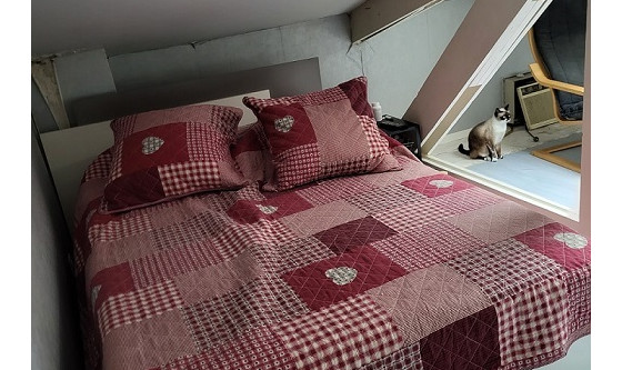 1 chambre(s) libre(s) dans une colocation de 1 chambres dans un appartment de 67m2 Chambre (sous toit) proche toutes commodités, proximité du Chu de Grenoble et du Tram B arrêt grand sablon à 5 minute. Le logement est situé dans un appartement lumineux et ensoleillé au 4ème étage sans ascenseur avec une jolie vue sur les montagnes dans une copropriété propre et calme disposant d'un parking privatif et d'un local vélo. Les pièces partagées sont le salon la cuisine équipée, salle de bain et toilettes. Appartement TRES propre, lumineux, cuisine refaite récemment, isolation par l'extérieur, fenêtre Pvc double vitrage. La chambre comprend un lit deux place un bureau, décoration. 2 hommes, actuellement en CDI, avec horaires variables occupent actuellement chacun une chambre (se croisent mais ne partagent pas forcément les repas en commun). Bonne humeur et joie de vivre sont requis et surtout respect de l'hygiène du logement. Loyer mensuel de 340 euros. Eléctricité :Compter 50 / mois. Internet: Non actif à date. à discuter avec les locataires en place. 1 mois de caution à prévoir à signature du bail/état des lieux. Chambre disponible immédiatement. Étudiants s'abstenir, Agences s'abstenir. Idéal Jeunes travailleurs. Updated on 02/10/2025 Mise à jour le 02/10/2025