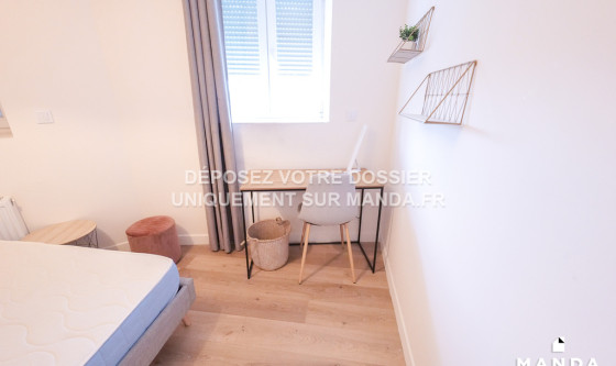 Logement Manda ! Visitez et déposez votre dossier uniquement sur notre plateforme ! Nous ne vous enverrons jamais le bail ou le RIB par mail - tout est sécurisé sur notre plateforme. L'agence Manda vous propose cette jolie chambre en colocation meublée, située à Lens. Les parties communes sont composées du séjour avec canapé, de la cuisine équipée et de la salle d'eau avec baignoire. La chambre concernée est équipée d'un lit double et d'un bureau. Idéalement situé dans un quartier résidentiel paisible et bien desservi, le logement est à proximité des commerces, des écoles et des transports en commun. Disponible immédiatement, cette jolie colocation n'attend que vous ! VOUS POUVEZ VISITER PLUS DE 3 000 LOGEMENTS (visite virtuelle + vidéos) ET DÉPOSER VOTRE CANDIDATURE SUR LE SITE WEB MANDA (REF : MANDA-54995) Référence du bien : MANDA-54995