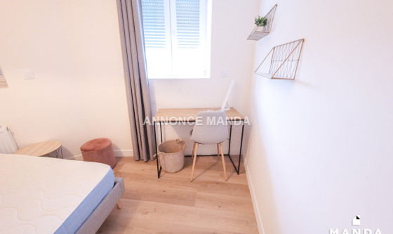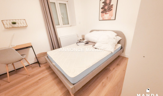 Logement Manda ! L'agence Manda vous propose cette jolie chambre en colocation meublée, située à Lens. Les parties communes sont composées du séjour avec canapé, de la cuisine équipée et de la salle d'eau avec baignoire. La chambre concernée est équipée d'un lit double et d'un bureau. Idéalement situé dans un quartier résidentiel paisible et bien desservi, le logement est à proximité des commerces, des écoles et des transports en commun. Disponible immédiatement, cette jolie colocation n'attend que vous ! Référence du bien : MANDA-54995