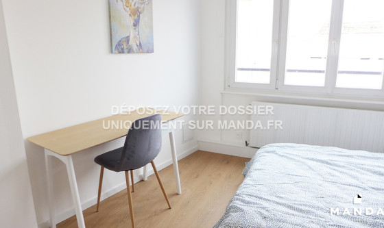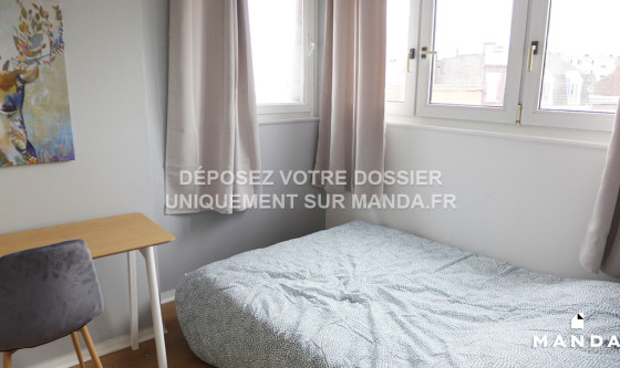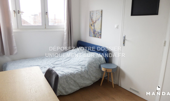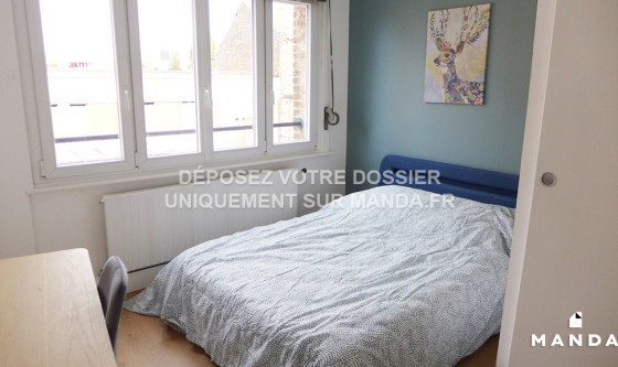 Logement Manda ! Visitez et déposez votre dossier uniquement sur notre plateforme ! Nous ne vous enverrons jamais le bail ou le RIB par mail - tout est sécurisé sur notre plateforme. À Lille, à proximité des stations de métro Mairie d'Hellemmes et Marbrerie (à 3 stations de Gare Lille-Flandres), Manda vous propose une chambre en colocation dans un superbe T4 meublé en location, situé au 2ème et dernier étage. La pièce principale comporte canapé, tables basses, télévision, meuble TV, écran plat, table haute avec chaises hautes. Salon avec TV connectée et box Internet – Wifi dispo dans l'appartement La cuisine ouverte est entièrement équipée et aménagée : vaisselle, casseroles, rangements, évier, microonde, lave-vaisselle, four, plaques à induction, hotte aspirante, réfrigérateur, congélateur. La chambre présente lit double, lampe de chevet, bureau, dressing. Salle d'eau attenante avec douche, vasque. Chaque chambre possède sa clé personnelle. Les toilettes sont séparées. L'appartement possède une cave au sous-sol (pratique pour les vélos). Très belles prestations pour cette chambre en colocation dans un T4 meublé en location : lumineux, refait à neuf, bien aménagé avec de nombreux rangements. Pour rappel, cet appartement est situé dans une zone soumise à encadrement des loyers. Loyer de base : 144,2€ Loyer de référence majoré (Loyer de base à ne pas dépasser) : 173,6€ Complément de loyer : 282,63€ VOUS POUVEZ VISITER PLUS DE 3 000 LOGEMENTS (visite virtuelle + vidéos) ET DÉPOSER VOTRE CANDIDATURE SUR LE SITE WEB MANDA (REF : MANDA-07370) Référence du bien : MANDA-07370