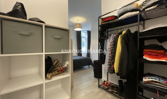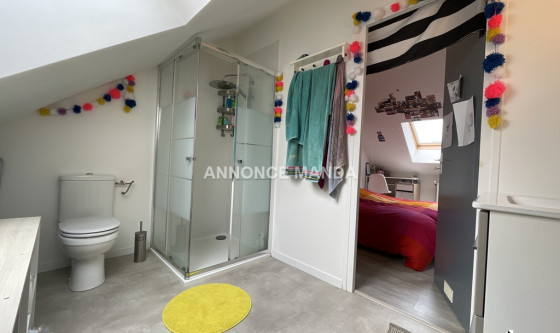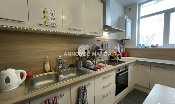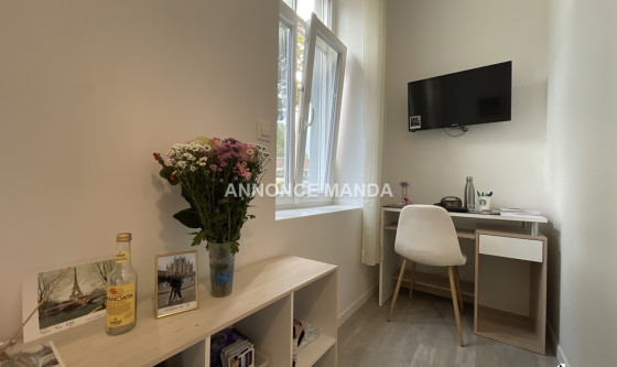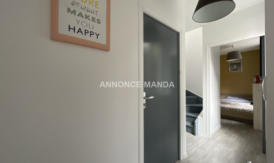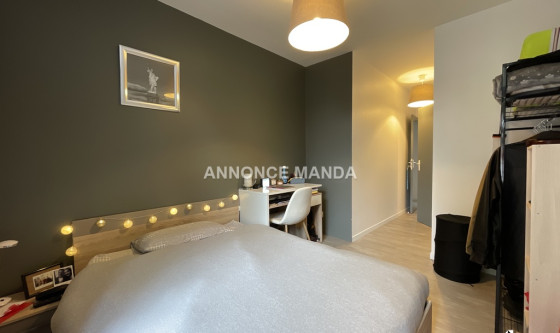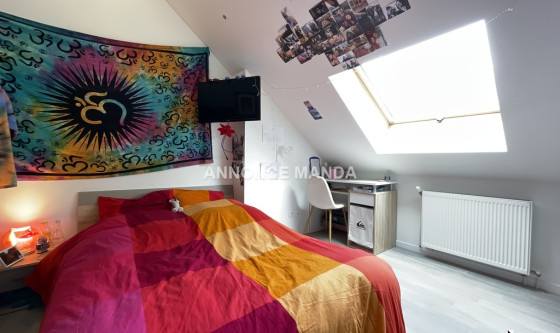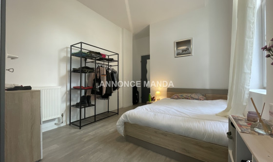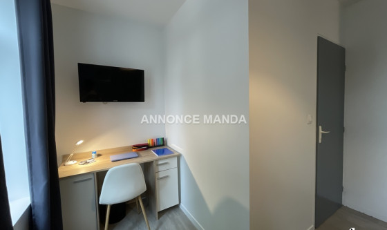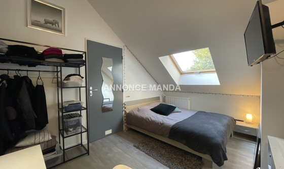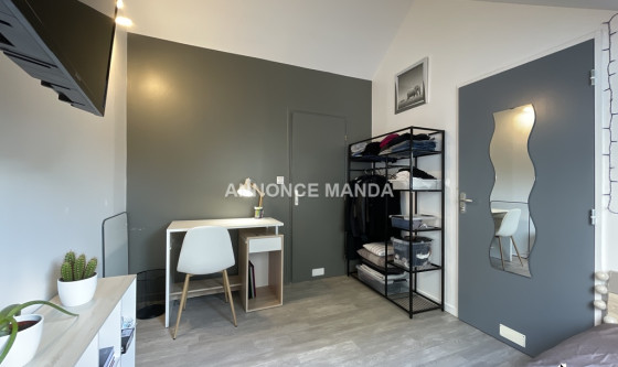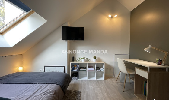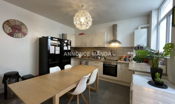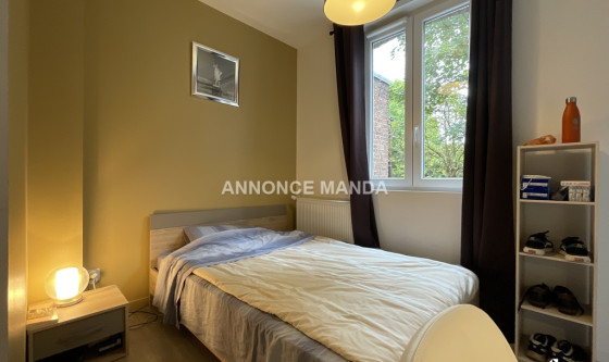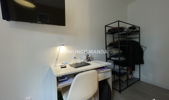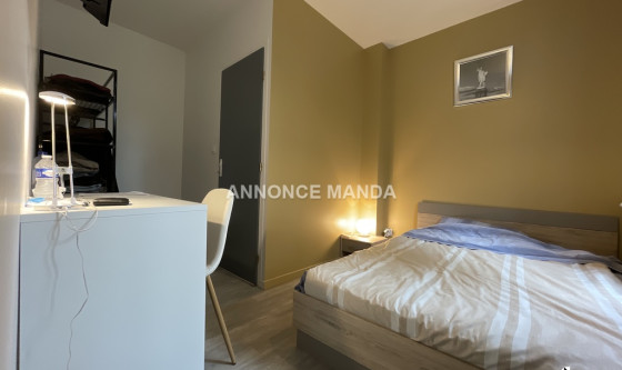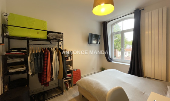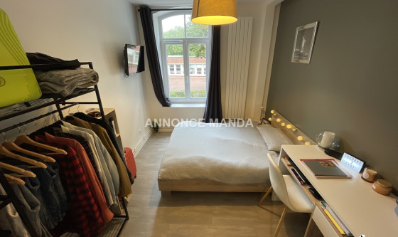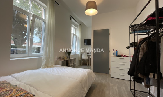 Logement Manda ! Au sein du quartier cosmopolite de Wazemmes, Manda vous propose une chambre à louer dans une colocation rue des Grimaretz. La chambre concernée par cette location est la première de visitée dans la visite virtuelle. Elle se compose d'un lit double, d'une table de chevet, d'un meuble dressing, d'un bureau et d'une TV. Elle est au RDC de la maison. De plus, elle dispose de sa propre salle de bain avec une douche, un meuble vasque, un miroir et des WC. Les parties communes comprennent : - Une pièce de vie composée d'un canapé, d'un fauteuil, d'une table basse, d'une TV, d'une grande table avec chaises. - Une cuisine équipée de plaques de cuisson, d'une hotte, d'un four, d'un lave-vaisselle, d'un réfrigérateur avec espace de congélation, d'un micro-onde, d'un sèche-linge et de nombreux espaces de rangement. - Des WC indépendants avec un lave-linge à proximité. - Une cour privative avec table et tabourets. Très belles prestations pour cette chambre à louer dans une colocation : lumineux, grands espaces, salle de bain privative, équipements de qualité, maison individuelle offrant du calme, nombreux commerces et services à proximité. Idéal pour jeune actif(ve) ou étudiant(e). N'attendez plus pour déposer un dossier ! Pour rappel, cet appartement est situé dans une zone soumise à encadrement des loyers. Loyer de base : 161,2€ Loyer de référence majoré (Loyer de base à ne pas dépasser) : 193,75€ Complément de loyer : 256,25€ Référence du bien : MANDA-14720