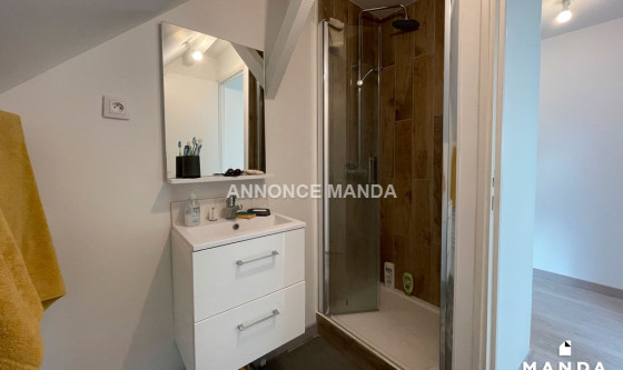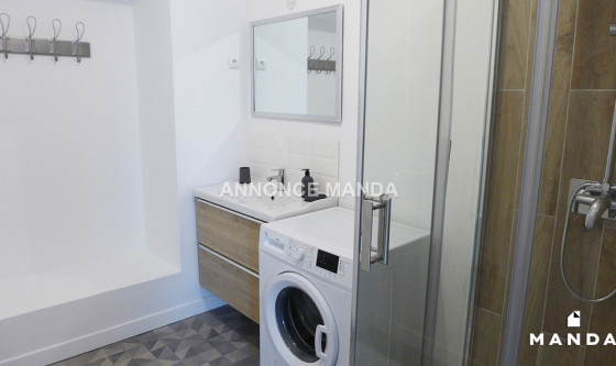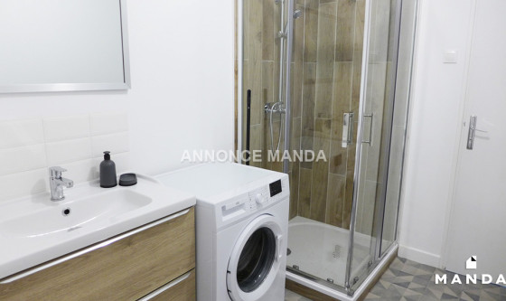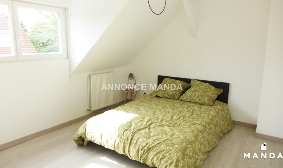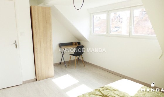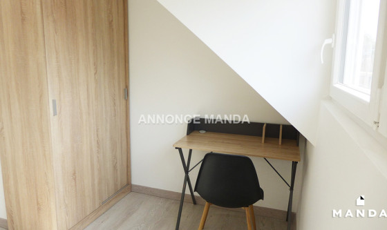 Logement Manda ! A 15 minutes à pied de la station de métro Porte d'Arras (Ligne 2), Manda vous propose cette chambre en location dans une colocation meublée dans une maison calme et agréable. Votre séjour disposera d'un grand canapé, une table basse, un meuble de télévision, une télévision, une table, un meuble de rangements et quatre chaises. Votre cuisine disposera d'un évier, des plaques de cuisson, un four, un four à micro-ondes, une hotte aspirante, un réfrigérateur avec compartiment congélateur, deux tabourets avec une table-bar et des espaces de rangement avec vaisselle et ustensiles de cuisine. Vous pourrez accéder à la terrasse et le jardin à travers la grande baie vitrée. Au fond du jardin se trouve un abri pour ranger du matériel. Dans votre première salle d'eau, vous disposerez d'une douche, un lavabo avec miroir et placard, un sèche-serviette électrique et un lave-linge. Dans votre deuxième salle d'eau, vous disposerez d'une douche, une vasque avec miroir et placard, un sèche-serviette électrique et un lave-linge. Des toilettes sont également présentes au rez-de-chaussée. Votre chambre est au second étage à gauche sur le plan et la quatrième à être visible sur la vidéo. Elle dispose d'un lit double, une table de chevet, un bureau, une chaise et un armoire de rangements. Belles prestations pour cette chambre en location dans une colocation spacieuse, lumineuse et calme. Les charges comprennent l'eau courante, l'électricité, l'eau chaude, le chauffage, internet et l'entretien des parties communes. Cette chambre est idéale pour un étudiant ou un jeune actif ! Pour rappel, cet appartement est situé dans une zone soumise à encadrement des loyers. Loyer de base : 103,0€ Loyer de référence majoré (Loyer de base à ne pas dépasser) : 124,0€ Complément de loyer : 276,0€ Référence du bien : MANDA-05999