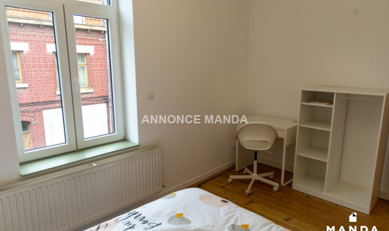 Logement Manda ! Située à Lille, cette chambre à louer dans une colocation se trouve dans une maison rue Mattéotti. Non loin de l'arrêt de bus Ferry, le logement est proche des commerces, et dispose d'un jardin privatif, et internet, eau chaude, chauffage et électricité sont inclus dans les charges. Le logement est éligible aux APLs. La chambre concernée par cette location est la première de visitée (chambre Jacqueline) et se compose d'un lit double, d'un bureau et d'une armoire. Les parties communes se composent du reste de la maison avec un salon, une salle à manger et le jardin. La cuisine est ouverte et équipée et chacune des deux salles de bains dispose d'une cabine de douche. Cette jolie chambre dans une colocation n'attend plus que vous ! Pour rappel, cet appartement est situé dans une zone soumise à encadrement des loyers. Loyer de base : 94,0€ Loyer de référence majoré (Loyer de base à ne pas dépasser) : 113,0€ Complément de loyer : 173,0€ Référence du bien : MANDA-26351