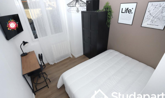1 chambre(s) libre(s) dans une colocation de 1 chambres dans un appartment de 72m2 Superbe Colocation de 4 chambres avec salle d'eau privative. Ce bel appartement d'environ 73 m², récemment rénové au coeur du quartier du Manio à Lorient. Il est entièrement meublé avec du mobilier moderne, offre le confort nécessaire pour s'installer dans la durée. La colocation comprend quatre chambres, phoniquement isolées, et disposent chacune de leur salle d'eau privative, d'un lit double, d'une TV écran plat, d'un bureau et de nombreux rangements. La cuisine aménagée est entièrement équipée : un four, une plaque à induction, un frigo/congélateur, un micro-ondes, une machine à café ainsi que tous les équipements pour faire à manger. Une machine lavante/séchante est aussi présente dans la maison avec tout le Kit ménage. A visiter rapidement ! • GARANTIE VISALE acceptée. • Eligible aux aides au logement. • Pas de clause de solidarité entre les locataires. Situé à 20 min à pied du centre et à 5 min en voiture de l'université Bretagne Sud. Cet appartement est également situé à proximité des arrêts de bus et des commerces et à 3 min de la voie express. Le diagnostic de performance énergétique du logement fait apparaître les étiquettes suivantes : Consommation énergétique : C Emission de gaz à effets de serre : A Frais annuels d'énergie : Entre: 790€ et 1110€ par an. Updated on 18/11/2025 Mise à jour le 18/11/2025
