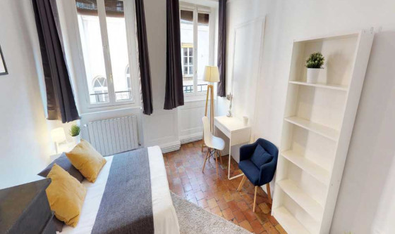 1 chambre(s) libre(s) dans une colocation de 1 chambres dans un appartment de 100m2 Colocation meublée ! -------------------------------- Tous nos appartements sont situés en centre-ville et proches de toutes commodités et transports en communs (Métro, Tramway et Bus). --------- Cette superbe chambre en colocation, meublée, équipée et tout inclus à Lyon unit confort et design. Elle offre de nombreux équipements comme un lit confortable et hypoallergénique avec couette et oreillers. Ne vous manque plus à apporter que vos vêtements pour y vivre ! La chambre possède un cadenas si besoin. Le logement est localisé dans le quartier Hôtel de Ville - Presqu'île, en plein coeur de Lyon. De nombreux commerces, transports publics, restaurants sont situés à proximité. La colocation est à l'étage 4 avec ascenseur. Elle est prête-à-vivre et propose une cuisine complètement équipée avec frigo, poêles, casseroles, vaisselle, bouilloire, ustensiles, micro-ondes… Ainsi que lave-linge, tancarville, fer à repasser, planche à repasser. Tout le nécessaire pour le ménage est sur place au sein de cette colocation : balai, balai-brosse, aspirateur, seau et serpillère… Chaque colocation meublée Joivy inclut toutes les charges : eau, assurance habitation, charges de copropriété, taxe sur les ordures, wifi illimité, électricité. Toutes nos chambres sont entièrement meublées (lit, bureau, penderie, couette, oreillers…). --------- Tous nos appartements sont entièrement équipés (lave-linge, vaisselle, décoration…) par nos équipes, qui se chargent également de la maintenance technique et matérielle. --------- Durée minimum de séjour : 1 mois Appartement éligible à la CAF jusqu'à 258€ / mois. La CAF pour Caisse d'allocations familiales est un service public gratuit et français éligible pour tous,y compris les étranger et qui peut vous aider financièrement à payer une partie de votre logement en fonction de votre situation que vous soyez français ou étranger. Pour connaître le montant potentiel de votre aide, rendez-vous sur le site de CAF et complétez l'estimation en ligne des APL (aide pour le logement). Frais de services : à partir de 390€ Les frais de services couvrent l'écriture du bail mais également l'assistance tout au long de votre séjour. Les frais de services couvrent ainsi la réparation et l'entretien du matériel ainsi que l'accès à notre support ultra réactif en cas de besoin d'intervention dans votre logement. Caution : 900€ --------- Nous accueillons principalement des étudiants ou des jeunes actifs français ou étrangers de 18 à 35 ans. Notre objectif est de faciliter l'accès à un logement meublé et parfaitement équipé et de vous permettre de faire de belles rencontres. Nos locataires sont de toute origine et toute culture ! Updated on 11/11/2025 Mise à jour le 11/11/2025