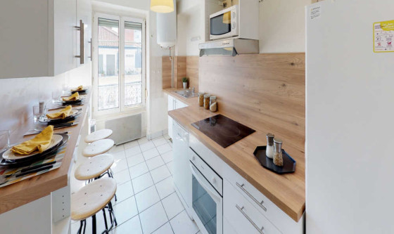 1 chambre(s) libre(s) dans une colocation de 1 chambres dans un appartment de 90m2 Colocation meublée ! -------------------------------- Tous nos appartements sont situés en centre-ville et proches de toutes commodités et transports en communs (Métro, Tramway et Bus). --------- Cette superbe chambre en colocation, meublée, équipée et tout inclus à Lyon unit confort et design. Elle offre de nombreux équipements comme un lit confortable et hypoallergénique avec couette et oreillers. Ne vous manque plus à apporter que vos vêtements pour y vivre ! La chambre possède un cadenas si besoin. Le logement est localisé dans le quartier Jean Macé, en plein coeur de Lyon. De nombreux commerces, transports publics, restaurants sont situés à proximité. La colocation est à l'étage 5 avec ascenseur. Elle est prête-à-vivre et propose une cuisine complètement équipée avec frigo, poêles, casseroles, vaisselle, bouilloire, ustensiles, micro-ondes… Ainsi que lave-linge, tancarville, fer à repasser, planche à repasser. Tout le nécessaire pour le ménage est sur place au sein de cette colocation : balai, balai-brosse, aspirateur, seau et serpillère… Chaque colocation meublée Joivy inclut toutes les charges : eau, assurance habitation, charges de copropriété, taxe sur les ordures, wifi illimité, électricité. Toutes nos chambres sont entièrement meublées (lit, bureau, penderie, couette, oreillers…). --------- Tous nos appartements sont entièrement équipés (lave-linge, vaisselle, décoration…) par nos équipes, qui se chargent également de la maintenance technique et matérielle. --------- Durée minimum de séjour : 1 mois Appartement éligible à la CAF jusqu'à 258€ / mois. La CAF pour Caisse d'allocations familiales est un service public gratuit et français éligible pour tous,y compris les étranger et qui peut vous aider financièrement à payer une partie de votre logement en fonction de votre situation que vous soyez français ou étranger. Pour connaître le montant potentiel de votre aide, rendez-vous sur le site de CAF et complétez l'estimation en ligne des APL (aide pour le logement). Frais de services : à partir de 390€ Les frais de services couvrent l'écriture du bail mais également l'assistance tout au long de votre séjour. Les frais de services couvrent ainsi la réparation et l'entretien du matériel ainsi que l'accès à notre support ultra réactif en cas de besoin d'intervention dans votre logement. Caution : 900€ --------- Nous accueillons principalement des étudiants ou des jeunes actifs français ou étrangers de 18 à 35 ans. Notre objectif est de faciliter l'accès à un logement meublé et parfaitement équipé et de vous permettre de faire de belles rencontres. Nos locataires sont de toute origine et toute culture ! Updated on 11/11/2025 Mise à jour le 11/11/2025