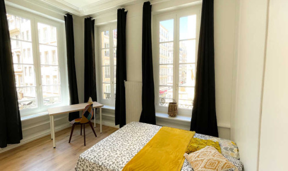2 chambre(s) libre(s) dans une colocation de 2 chambres dans un appartment de 80m2 100.00€ de réduction pour les 6 premiers mois Colocation meublée ! -------------------------------- Tous nos appartements sont situés en centre-ville et proches de toutes commodités et transports en communs (Métro, Tramway et Bus). --------- Cette superbe chambre en colocation, meublée, équipée et tout inclus à Lyon unit confort et design. Elle offre de nombreux équipements comme un lit confortable et hypoallergénique avec couette et oreillers. Ne vous manque plus à apporter que vos vêtements pour y vivre ! La chambre possède un cadenas si besoin. Le logement est localisé dans le quartier Bellecour - Presqu'île, en plein coeur de lyon. De nombreux commerces, transports publics, restaurants sont situés à proximité. La colocation est à l'étage 2 sans ascenseur. Elle est prête-à-vivre et propose une cuisine complètement équipée avec frigo, poêles, casseroles, vaisselle, bouilloire, ustensiles, micro-ondes… Ainsi que lave-linge, tancarville, fer à repasser, planche à repasser. Tout le nécessaire pour le ménage est sur place au sein de cette colocation : balai, balai-brosse, aspirateur, seau et serpillère… Chaque colocation meublée Joivy inclut toutes les charges : eau, assurance habitation, charges de copropriété, taxe sur les ordures, wifi illimité, électricité. Toutes nos chambres sont entièrement meublées (lit, bureau, penderie, couette, oreillers…). --------- Tous nos appartements sont entièrement équipés (lave-linge, vaisselle, décoration…) par nos équipes, qui se chargent également de la maintenance technique et matérielle. --------- Durée minimum de séjour : 1 mois Appartement éligible à la CAF jusqu'à 258€ / mois. La CAF pour Caisse d'allocations familiales est un service public gratuit et français éligible pour tous,y compris les étranger et qui peut vous aider financièrement à payer une partie de votre logement en fonction de votre situation que vous soyez français ou étranger. Pour connaître le montant potentiel de votre aide, rendez-vous sur le site de CAF et complétez l'estimation en ligne des APL (aide pour le logement). Frais de services : à partir de 390€ Les frais de services couvrent l'écriture du bail mais également l'assistance tout au long de votre séjour. Les frais de services couvrent ainsi la réparation et l'entretien du matériel ainsi que l'accès à notre support ultra réactif en cas de besoin d'intervention dans votre logement. Caution : 900€ --------- Nous accueillons principalement des étudiants ou des jeunes actifs français ou étrangers de 18 à 35 ans. Notre objectif est de faciliter l'accès à un logement meublé et parfaitement équipé et de vous permettre de faire de belles rencontres. Nos locataires sont de toute origine et toute culture ! Updated on 12/11/2025 Mise à jour le 12/11/2025