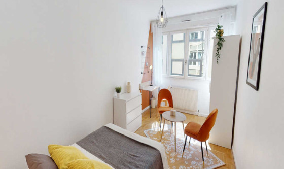 1 chambre(s) libre(s) dans une colocation de 1 chambres dans un appartment de 90m2 Colocation meublée ! -------------------------------- Tous nos appartements sont situés en centre-ville et proches de toutes commodités et transports en communs (Métro, Tramway et Bus). --------- Cette superbe chambre en colocation, meublée, équipée et tout inclus à Lyon unit confort et design. Elle offre de nombreux équipements comme un lit confortable et hypoallergénique avec couette et oreillers. Ne vous manque plus à apporter que vos vêtements pour y vivre ! La chambre possède un cadenas si besoin. Le logement est localisé dans le quartier Brotteaux, en plein coeur de Lyon. De nombreux commerces, transports publics, restaurants sont situés à proximité. La colocation est à l'étage 1 avec ascenseur. Elle est prête-à-vivre et propose une cuisine complètement équipée avec frigo, poêles, casseroles, vaisselle, bouilloire, ustensiles, micro-ondes… Ainsi que lave-linge, tancarville, fer à repasser, planche à repasser. Tout le nécessaire pour le ménage est sur place au sein de cette colocation : balai, balai-brosse, aspirateur, seau et serpillère… Chaque colocation meublée Joivy inclut toutes les charges : eau, assurance habitation, charges de copropriété, taxe sur les ordures, wifi illimité, électricité. Toutes nos chambres sont entièrement meublées (lit, bureau, penderie, couette, oreillers…). --------- Tous nos appartements sont entièrement équipés (lave-linge, vaisselle, décoration…) par nos équipes, qui se chargent également de la maintenance technique et matérielle. --------- Durée minimum de séjour : 1 mois Appartement éligible à la CAF jusqu'à 258€ / mois. La CAF pour Caisse d'allocations familiales est un service public gratuit et français éligible pour tous,y compris les étranger et qui peut vous aider financièrement à payer une partie de votre logement en fonction de votre situation que vous soyez français ou étranger. Pour connaître le montant potentiel de votre aide, rendez-vous sur le site de CAF et complétez l'estimation en ligne des APL (aide pour le logement). Frais de services : à partir de 390€ Les frais de services couvrent l'écriture du bail mais également l'assistance tout au long de votre séjour. Les frais de services couvrent ainsi la réparation et l'entretien du matériel ainsi que l'accès à notre support ultra réactif en cas de besoin d'intervention dans votre logement. Caution : 900€ --------- Nous accueillons principalement des étudiants ou des jeunes actifs français ou étrangers de 18 à 35 ans. Notre objectif est de faciliter l'accès à un logement meublé et parfaitement équipé et de vous permettre de faire de belles rencontres. Nos locataires sont de toute origine et toute culture ! Updated on 18/11/2025 Mise à jour le 18/11/2025