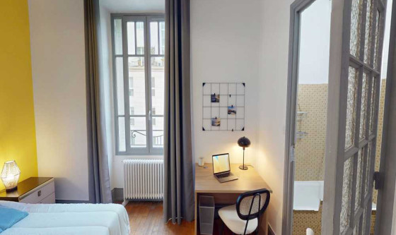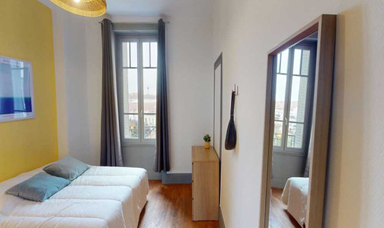 2 chambre(s) libre(s) dans une colocation de 2 chambres dans un appartment de 120m2 Colocation meublée ! -------------------------------- Tous nos appartements sont situés en centre-ville et proches de toutes commodités et transports en communs (Métro, Tramway et Bus). --------- Cette superbe chambre en colocation, meublée, équipée et tout inclus à Lyon unit confort et design. Elle offre de nombreux équipements comme un lit confortable et hypoallergénique avec couette et oreillers. Ne vous manque plus à apporter que vos vêtements pour y vivre ! La chambre possède un cadenas si besoin. Le logement est localisé dans le quartier Garibaldi, en plein coeur de lyon. De nombreux commerces, transports publics, restaurants sont situés à proximité. La colocation est à l'étage 4 sans ascenseur. Elle est prête-à-vivre et propose une cuisine complètement équipée avec frigo, poêles, casseroles, vaisselle, bouilloire, ustensiles, micro-ondes… Ainsi que lave-linge, tancarville, fer à repasser, planche à repasser. Tout le nécessaire pour le ménage est sur place au sein de cette colocation : balai, balai-brosse, aspirateur, seau et serpillère… Chaque colocation meublée Joivy inclut toutes les charges : eau, assurance habitation, charges de copropriété, taxe sur les ordures, wifi illimité, électricité. Toutes nos chambres sont entièrement meublées (lit, bureau, penderie, couette, oreillers…). --------- Tous nos appartements sont entièrement équipés (lave-linge, vaisselle, décoration…) par nos équipes, qui se chargent également de la maintenance technique et matérielle. --------- Durée minimum de séjour : 1 mois Appartement éligible à la CAF jusqu'à 258€ / mois. La CAF pour Caisse d'allocations familiales est un service public gratuit et français éligible pour tous,y compris les étranger et qui peut vous aider financièrement à payer une partie de votre logement en fonction de votre situation que vous soyez français ou étranger. Pour connaître le montant potentiel de votre aide, rendez-vous sur le site de CAF et complétez l'estimation en ligne des APL (aide pour le logement). Frais de services : à partir de 590€ Les frais de services couvrent l'écriture du bail mais également l'assistance tout au long de votre séjour. Les frais de services couvrent ainsi la réparation et l'entretien du matériel ainsi que l'accès à notre support ultra réactif en cas de besoin d'intervention dans votre logement. Caution : 900€ --------- Nous accueillons principalement des étudiants ou des jeunes actifs français ou étrangers de 18 à 35 ans. Notre objectif est de faciliter l'accès à un logement meublé et parfaitement équipé et de vous permettre de faire de belles rencontres. Nos locataires sont de toute origine et toute culture ! Updated on 18/11/2025 Mise à jour le 18/11/2025