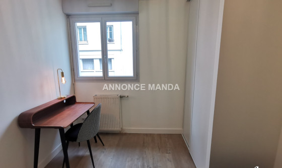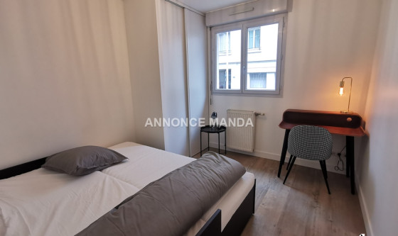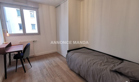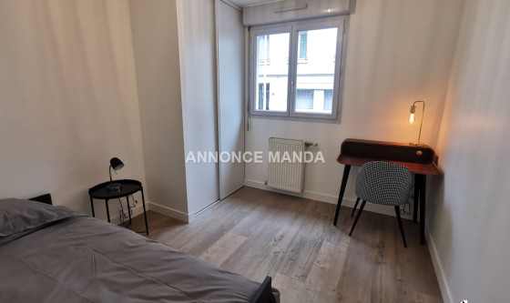 Logement Manda ! Située à Lyon, cette chambre en colocation meublée se trouve rue Saint-Eusèbe. Non loin de l'arrêt de tram Archives Départementales, le logement est proche de la gare Lyon Part-Dieu et de toutes commodités, et toutes les charges sont incluses. L'appartement est composé du séjour avec canapé et écran plat, de la cuisine ouverte entièrement équipée avec table à manger, de la salle d'eau avec douche et des trois chambres. Toutes les chambres sont meublées d'un lit simple, d'un bureau et d'un placard intégré. La chambre concernée est la deuxième sur la vidéo. Cette jolie colocation n'attend que vous ! Pour rappel, cet appartement est situé dans une zone soumise à encadrement des loyers. Loyer de base : 139,7€ Loyer de référence majoré (Loyer de base à ne pas dépasser) : 167,2€ Complément de loyer : 322,8€ Référence du bien : MANDA-48262
