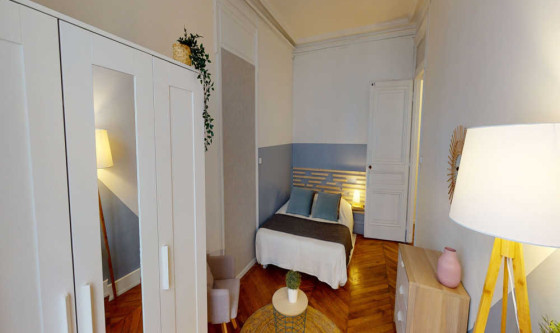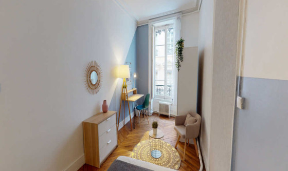 1 chambre(s) libre(s) dans une colocation de 1 chambres dans un appartment de 110m2 Colocation meublée ! -------------------------------- Tous nos appartements sont situés en centre-ville et proches de toutes commodités et transports en communs (Métro, Tramway et Bus). --------- Cette superbe chambre en colocation, meublée, équipée et tout inclus à Lyon unit confort et design. Elle offre de nombreux équipements comme un lit confortable et hypoallergénique avec couette et oreillers. Ne vous manque plus à apporter que vos vêtements pour y vivre ! La chambre possède un cadenas si besoin. Le logement est localisé dans le quartier Hôtel de Ville - Presqu'île, en plein coeur de Lyon. De nombreux commerces, transports publics, restaurants sont situés à proximité. La colocation est à l'étage 3 sans ascenseur. Elle est prête-à-vivre et propose une cuisine complètement équipée avec frigo, poêles, casseroles, vaisselle, bouilloire, ustensiles, micro-ondes… Ainsi que lave-linge, tancarville, fer à repasser, planche à repasser. Tout le nécessaire pour le ménage est sur place au sein de cette colocation : balai, balai-brosse, aspirateur, seau et serpillère… Chaque colocation meublée Joivy inclut toutes les charges : eau, assurance habitation, charges de copropriété, taxe sur les ordures, wifi illimité, électricité. Toutes nos chambres sont entièrement meublées (lit, bureau, penderie, couette, oreillers…). --------- Tous nos appartements sont entièrement équipés (lave-linge, vaisselle, décoration…) par nos équipes, qui se chargent également de la maintenance technique et matérielle. --------- Durée minimum de séjour : 1 mois Appartement éligible à la CAF jusqu'à 258€ / mois. La CAF pour Caisse d'allocations familiales est un service public gratuit et français éligible pour tous,y compris les étranger et qui peut vous aider financièrement à payer une partie de votre logement en fonction de votre situation que vous soyez français ou étranger. Pour connaître le montant potentiel de votre aide, rendez-vous sur le site de CAF et complétez l'estimation en ligne des APL (aide pour le logement). Frais de services : à partir de 590€ Les frais de services couvrent l'écriture du bail mais également l'assistance tout au long de votre séjour. Les frais de services couvrent ainsi la réparation et l'entretien du matériel ainsi que l'accès à notre support ultra réactif en cas de besoin d'intervention dans votre logement. Caution : 900€ --------- Nous accueillons principalement des étudiants ou des jeunes actifs français ou étrangers de 18 à 35 ans. Notre objectif est de faciliter l'accès à un logement meublé et parfaitement équipé et de vous permettre de faire de belles rencontres. Nos locataires sont de toute origine et toute culture ! Updated on 03/12/2025 Mise à jour le 03/12/2025
