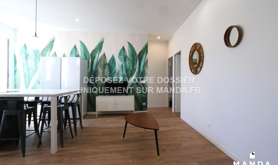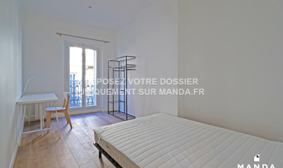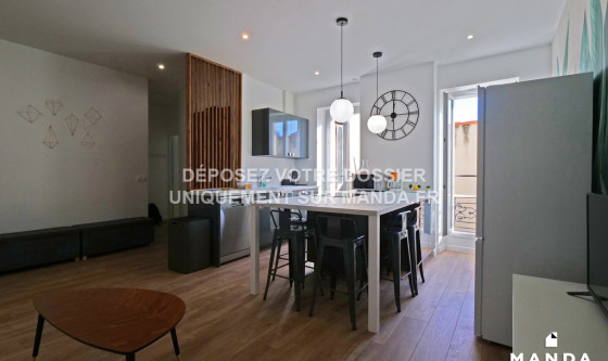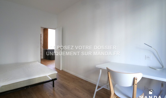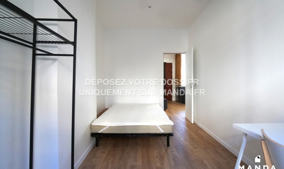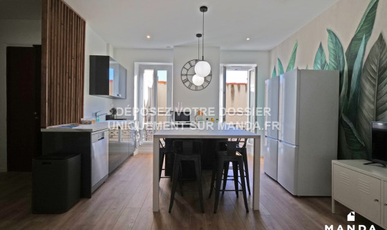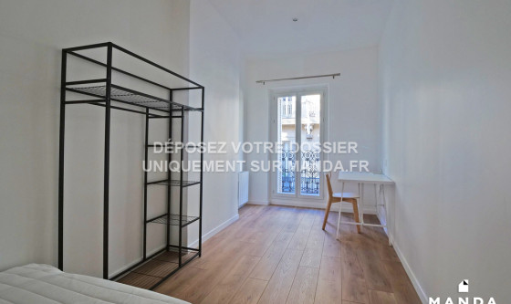 Logement Manda ! Visitez et déposez votre dossier uniquement sur notre plateforme ! Nous ne vous enverrons jamais le bail ou le RIB par mail - tout est sécurisé sur notre plateforme. A quelques pas de la station Estrangin, Manda propose une chambre à louer dans une colocation rue Edmond Rostand. Situé au 4ème étage d'un immeuble haussmannien sans ascenseur, cette colocation de 5 chambres a été refaite entièrement à neuf et sera louée meublée. La chambre concernée par cette location est la troisième de visitée dans la visite virtuelle et se trouve au bout de l'appartement à gauche, juste après la cuisine. Elle propose un lit superposé pour deux personnes, un bureau avec sa chaise, un espace de rangement et une fenêtre sur cour. Les parties communes comprennent : L'entrée qui donne dans la pièce de vie et dispose de l'interphone. La cuisine, complètement ouverte et équipée : large ilot central avec cinq tabourets hauts, évier, plaque de cuisson, four, micro-ondes, lave-vaisselle, machine à café, deux grands réfrigérateurs avec congélateur, meuble TV, écran plat, miroir et fenêtre sur cour au calme. Une première salle de bain dispose d'une cabine de douche, d'une grande vasque à double robinet sur quatre tiroirs, d'un chauffe-serviettes, d'un sèche linge et d'un miroir lumineux. La seconde salle de bain dispose d'une cabine de douche, d'un plan de travail, d'une grande vasque à double robinet, de quatre tiroirs, d'un miroir, d'un chauffe-serviettes et d'une fenêtre. Deux toilettes sont à disposition : un dans la première salle de bain, l'autre est indépendant et se trouve au niveau de l'entrée. Très belles prestations pour cette chambre à louer dans une colocation : appartement entièrement refait à neuf, complètement équipé et meublé haut de gamme, lumineux, calme, parfaitement agencé pour la colocation, deux salles de bain... Le métro Estrangin est à quelques pas, tous les commerces sont à proximité immédiate et le Vieux Port est à quelques minutes. Idéal pour étudiant(e) ou jeune actif(ve), n'attendez plus pour déposer votre candidature ! VOUS POUVEZ VISITER PLUS DE 3 000 LOGEMENTS (visite virtuelle + vidéos) ET DÉPOSER VOTRE CANDIDATURE SUR LE SITE WEB MANDA (REF : MANDA-09976) Référence du bien : MANDA-09976