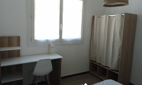 2 chambre(s) libre(s) dans une colocation de 2 chambres dans un appartment de 56m2 Chambre meublée entièrement équipée neuve (un lit double, bureau avec lampe, tapis,miroir, dressing, ) idéale étudiante sérieuse avec garants exigés en colocation dans bel appartement tout équipé entièrement refait à neuf en rez de chaussée d'une résidence sécurisée avec portail électrique dans le quartier de Saint Barnabé, à proximité immédiate des commerces et des transports (bus, métro, station vélo électrique ). Caution solidaire parents exigée. Un mois de loyer d'avance. Loyer de 475 euros charges comprises (eau, électricité, gaz de ville, box internet). Updated on 04/11/2025 Mise à jour le 04/11/2025