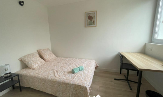 2 chambre(s) libre(s) dans une colocation de 2 chambres dans un appartment de 80m2 COLOCATION – 18 Rue Richard Wagner, 33700 - MERIGNAC Appartement T5 de 80 m² au 3ème étage, entièrement rénové à neuf et meublé avec goût. L'arrêt de TRAM A – « Mérignac Centre » se trouve à 350m de la colocation. L'hôpital Pellegrin est à 25 minutes en TRAM. L'appartement est composé d'un salon avec TV, d'une cuisine dans laquelle vous trouverez tout l'électroménager nécessaire : lave-vaisselle, four, plaques, hotte, frigo, cafetière, vaisselle et ustensiles de cuisine. Idéalement conçu pour de la colocation, vous trouverez deux salles d'eau communes partagées aux 4 chambres et un WC indépendant. Les 4 chambres ont une superficie d'environ 10m². Chaque chambre est meublée d'un lit double, un espace bureau, et de rangements type placards/penderies. Location de chaque chambre au prix de 525€/mois décomposé de la manière suivante : Loyer : 475€ Forfait charges (TV/internet, électricité, eau, charges de copropriété) : 50€ Possibilité de louer une place de parking en supplément : 70€ par mois. Dépôt de garantie : 1 mois de loyer hors charges Mise en location gérée par une agence, frais de dossier de 260€, frais d'états des lieux inclus. Garantie Visale acceptée Éligible aides aux logements Updated on 18/11/2025 Mise à jour le 18/11/2025