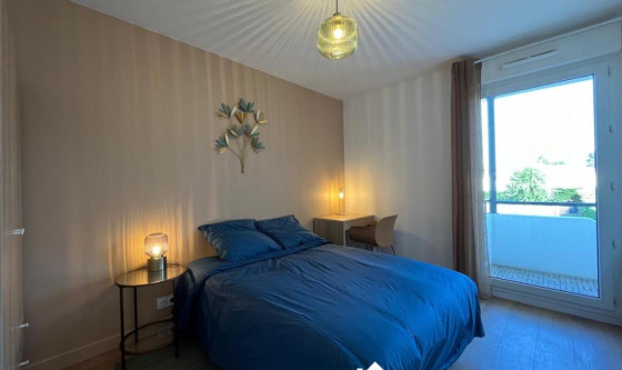 3 chambre(s) libre(s) dans une colocation de 3 chambres dans un appartment de 68m2 A louer-Appartement T4 de 68,71m2 en Colocation à Mérignac avec et vue piscine Découvrez ce magnifique appartement T4 de 68,71m², complètement rénové et décoré avec goût, résidence très calme, proche de toutes commodités. LE QUARTIER : A 300m de l'arrêt de bus Le Grand Louis ( bus express G) A 7 minutes à pied de l'arrêt de tram Lycées de Mérignac (tram A) A 500m à pied du Centre commercial Mérignac soleil Et de nombreux petits commerces à proximité de la résidence. Description : Appartement situé au 1 ème et dernier étage d'un petit et bel immeuble, donnant sur la piscine de la résidence. Bien refait complètement à neuf (isolation, plancher, peintures, cuisine, SDB ….) Bien complètement meublé et équipée avec goût. Cuisine neuve avec électroménager de marques, avec un micro-onde, un four, une plaque chauffante , un réfrigérateur/congélateur, de nombreux rangements et vaisselle incluse. Le salon est équipé d'une TV connectée, mobilier contemporain, d'un canapé 2 places, d'une table ronde et ses 3 chaises. Chambre 1 : 10,6m2 Équipée d'un lit double avec table de nuit, d'un bureau avec sa chaise, d'une grande armoire dotée d'une penderie et d'une salle de bain privative déportée avec douche vasque et meuble sous vasque Chambre 2 : Colocataire en place. Chambre 3 : 10,9m2 Équipée d'un lit double avec table de nuit, d'un bureau avec sa chaise, d'une grande armoire dotée d'une penderie et d'une salle de bain privative attenante avec douche vasque et meuble sous vasque