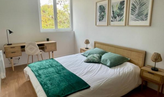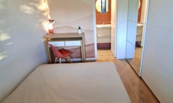 3 chambre(s) libre(s) dans une colocation de 3 chambres dans un appartment de 71m2 Appartement tout juste remis à neuf au dernier étage avec ascenseur, dans résidence calme et arborée, à 7 min à pied du centre commercial et de la gare de Saint-Quentin-en-Yvelines. Les chambres avec bureau et espaces de rangement généreux sont sécurisées avec clé : Chambre 1 de 10m2 avec lit double, son grand placard, son balcon privatif de 4m2 et sa salle de douche privative Chambre 2 de 12m2 avec lit double en 160 et tiroirs, son grand bureau et sa grande penderie intégrée Chambre 3 de 9m2 avec lit coffre double pour plus de rangement et son dressing attenant indépendant et sécurisé par clé de 2,9m2 Salle de bain avec douche et lave-linge WC séparé Placards d'entrée et d'entretien communs avec des espaces dédiés pour chacun Espace de vie spacieux de 25m2 comprenant : Salon équipé d'une TV Haute Définition avec balcon commun de 5m2 Salle à manger avec cuisine équipée de 4 plaques à induction, d'une hotte, d'un combiné four/micro-onde, d'un grand réfrigérateur, d'un congélateur séparé, d'un lave vaisselle et avec des placards dédiés pour chaque colocataire. Ménage dans les parties communes inclus