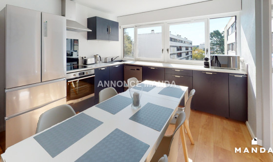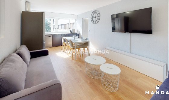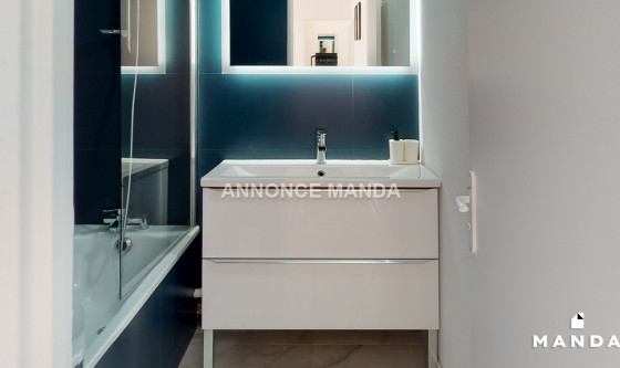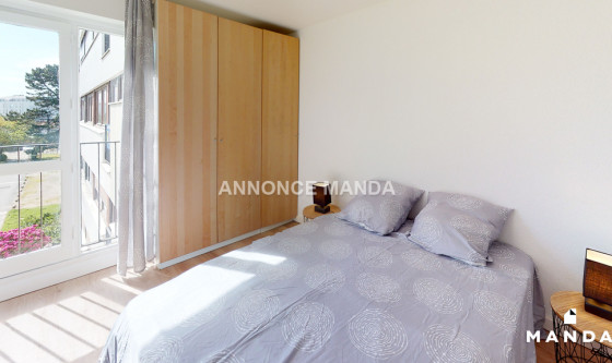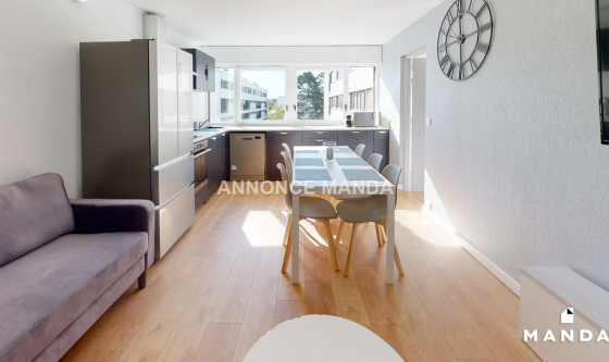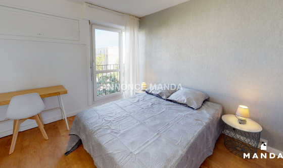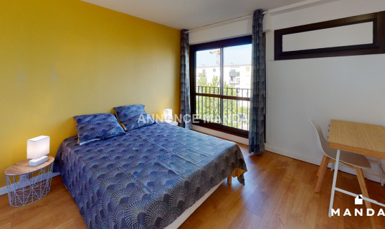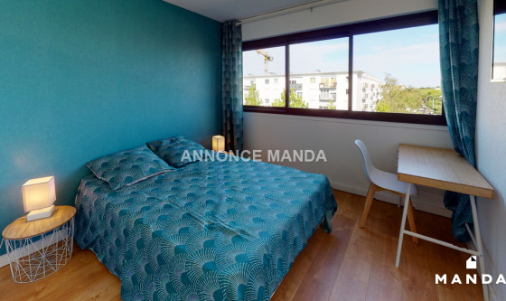 Logement Manda ! A deux pas du Tram Romanet, Manda propose une chambre à louer dans une colocation boulevard du Tertre. Situé au 3ème étage, cet appartement refait à neuf se partage entre 5 colocataires et vous sera loué meublé. La chambre concernée par cette location est la deuxième de visitée dans la visite virtuelle (draps gris). Elle se compose d'un lit double et de rangements. Les parties communes comprennent : L'entrée avec interphone. La pièce de vie, large et lumineuse, qui se divise en deux espaces : la cuisine ouverte sur salle à manger et le salon. La cuisine est entièrement équipée, et la fenêtre donne sur l'arrière de l'immeuble. La salle de bain se compose d'une baignoire avec pare-douche et d'une grande vasque. L'appartement dispose de deux WC séparés et de deux lave-linges. Un parking est rattaché à ce logement. Très belles prestations pour cette chambre à louer dans une colocation : logement entièrement refait à neuf et avec goût, idéalement agencé pour la colocation, nombreux rangements, lumineux, calme, parking... Le Tram Romanet est à deux pas, tous les commerces sont à proximité et vous serez dans le centre-ville de Nantes en une quinzaine de minutes. Idéal pour étudiant(e) ou jeune actif(ve), n'attendez plus pour déposer votre candidature ! Référence du bien : MANDA-12178