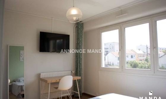 Logement Manda ! Située à Nantes, cette chambre en colocation dans un T6 meublé de 100m2 se trouve Rue Guillaume Apollinaire. Non loin de l'arrêt de tramway Romain Rolland, le logement est proche de toutes les commodités et dispose d'un balcon et d'un parking. L'électricité, le chauffage et internet sont inclus dans les charges. Cet appartement lumineux est composé d'un salon donnant sur le balcon, d'une cuisine ouverte, de 5 chambres, de 2 salles de bain - une avec baignoire et l'autre avec douche - et de WC séparés. La cuisine est équipée d'un lave-linge, d'un lave-vaisselle, d'un micro-ondes, d'un four, de plaques de cuisson, d'une hotte et d'un grand réfrigérateur/congélateur. Le salon dispose de 2 canapés, d'une table basse, d'une table à manger, de 6 chaises et d'une TV écran plat. La chambre est entièrement meublée avec lit double, TV, dressing et bureau. Cette jolie chambre en colocation n'attend que vous! Référence du bien : MANDA-38926