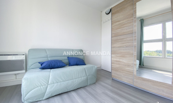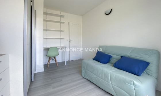 Logement Manda ! A proximité de la gare de Noisy-le-Grand, Manda propose une chambre à louer dans une colocation place Pablo Picasso. Situé au cinquième étage avec ascenseur, cette chambre fait partie d'un duplex qui se partage entre six colocataires. La chambre concernée par cette location est la cinquième de visitée dans la visite virtuelle et se compose d'un canapé convertible pour deux personnes, d'un coin bureau, de rangements, d'un réfrigérateur et d'une ouverture donnant sur une terrasse commune à la dernière chambre. La vue est dégagée. Les partie communes sont : L'entrée qui ouvre sur un hall desservant avec espace de rangement, La salle à manger avec une table et ses chaises, La cuisine, séparée et entièrement équipée avec de nombreux rangements, Chaque colocataire aura à sa disposition un placard privatif dans la cuisine avec une clé. Les deux salles de bains, équipées à l'identique avec cabine de douche, meuble vasque et WC. Les WC, qui sont dans chaque salle de bain : à l'étage du bas et en haut. Très belles prestations pour cette chambre à louer dans une colocation : logement très lumineux, calme, rangements, entièrement meublé et équipé, parfaitement agencé pour la colocation, grande terrasse... La gare de Noisy-le-Grand est à proximité, tous les commerces sont à quelques minutes et vous serez dans Paris en moins de vingt minutes. Idéal pour étudiant(e) ou jeune actif(ve), n'attendez plus pour déposer votre candidature ! Référence du bien : MANDA-15735