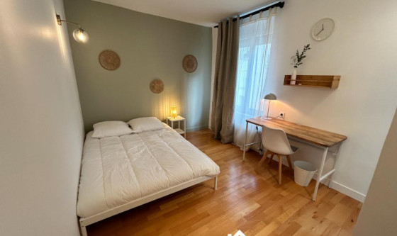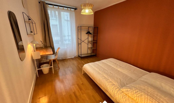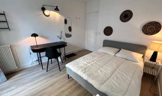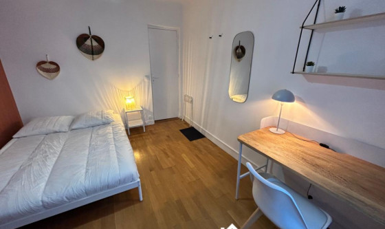 1 chambre(s) libre(s) dans une colocation de 1 chambres dans une maison de 200m2 Rue du Couédic, 14ème arrondissement, à 3 minutes à pieds de la station de métro Mouton Devernet, ligne 4 et à 7 minutes à pieds de la station Denfert Rochereau, RER B. Nous vous proposons, dans un bel immeuble, une chambre meublée en colocation rénovée et décorée récemment. Lit 140 * 200 cm, penderie, bureau et salle de bain privative pour votre confort. Sur le même palier, un espace détente / lecture avec canapé et fauteuil est à votre disposition. A l'étage inférieur, vous partagerez avec 7 autres colocataires une cuisine équipée avec lave linge et lave vaisselle, un espace salon avec TV et une terrasse. Une cour intérieure, avec rack à vélos, est également accessible par l'ensemble des occupants de l'immeuble. Le loyer toutes charges comprises : le chauffage, l'eau, l'électricité,, le ménage hebdomadaire des parties partagées de la colocation, internet et toutes les autres charges locatives. Rénovation complète de la colocation en novembre 2023. Eligible APL Autres photos et vidéo disponibles sur demande. Autres chambres disponibles dans cette colocation. Modalité de récupération des charges locatives : Forfait de charges et services Updated on 18/11/2025 Mise à jour le 18/11/2025