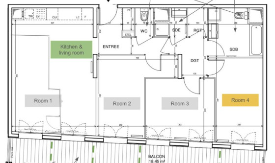 1 chambre(s) libre(s) dans une colocation de 1 chambres dans un appartment de 106m2 Bonjour, Je propose des chambres louées indépendamment dans un appartement en colocation au sein d'un immeuble tout neuf construit en 2024. L'appartement fait 106m², 4 chambres, 1 cuisine ouverte sur la pièce de vie, 2 salles de bain dont 1 avec baignoire et toilette, 1 cabinet de toilettes séparées, un cagibi et une entrée avec placards. Toutes les chambres donnent sur la terrasse, et peuvent être aménagées de manière à avoir son balcon privatif. Entièrement meublé et équipé (cuisine équipée, literie Tediber neuve, linge de lit et de bain fourni, machine à laver et sèche-linge etc.) Le loyer présenté inclut toutes les charges : chauffage, électricité, internet, assurance habitation, ménage des parties communes de l'appartement. C'est une colocation mixte, conviviale mais calme. L'appartement est très bien situé, à deux pas de la ligne 9 du métro (station Porte de Montreuil ou Robespierre), et à 400m de la salle d'escalade Arkose et des locaux d'Ubisoft et de la banque BNP Paribas ; beaucoup de commerces et de restaurants à proximité de l'appartement. Possibilité de louer un parking dans la résidence en option. Nos colocations sont éligibles aux aides au logement de la CAF, telles que l'APL et l'ALS, et ce, également pour les personnes de nationalité internationale. Ce sont des aides financières qui permettent de réduire le montant du loyer à payer. Updated on 13/12/2025 Mise à jour le 13/12/2025