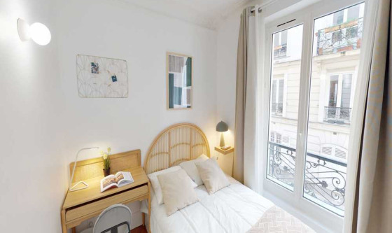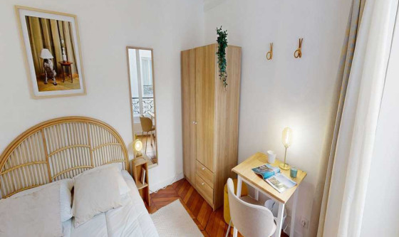 3 chambre(s) libre(s) dans une colocation de 3 chambres dans un appartment de 50m2 55.00€ de réduction pour le premier mois Colocation meublée ! -------------------------------- Tous nos appartements sont situés en centre-ville et proches de toutes commodités et transports en communs (Métro, Tramway et Bus). --------- Cette superbe chambre en colocation, meublée, équipée et tout inclus à Paris unit confort et design. Elle offre de nombreux équipements comme un lit confortable et hypoallergénique avec couette et oreillers. Ne vous manque plus à apporter que vos vêtements pour y vivre ! La chambre possède un cadenas si besoin. Le logement est localisé dans le quartier Rochechouart, en plein coeur de Paris. De nombreux commerces, transports publics, restaurants sont situés à proximité. La colocation est à l'étage 1 avec ascenseur. Elle est prête-à-vivre et propose une cuisine complètement équipée avec frigo, poêles, casseroles, vaisselle, bouilloire, ustensiles, micro-ondes… Ainsi que lave-linge, tancarville, fer à repasser, planche à repasser. Tout le nécessaire pour le ménage est sur place au sein de cette colocation : balai, balai-brosse, aspirateur, seau et serpillère… Chaque colocation meublée Joivy inclut toutes les charges : eau, assurance habitation, charges de copropriété, taxe sur les ordures, wifi illimité, électricité. Toutes nos chambres sont entièrement meublées (lit, bureau, penderie, couette, oreillers…). --------- Tous nos appartements sont entièrement équipés (lave-linge, vaisselle, décoration…) par nos équipes, qui se chargent également de la maintenance technique et matérielle. --------- Durée minimum de séjour : 1 mois Appartement éligible à la CAF jusqu'à 258€ / mois. La CAF pour Caisse d'allocations familiales est un service public gratuit et français éligible pour tous,y compris les étranger et qui peut vous aider financièrement à payer une partie de votre logement en fonction de votre situation que vous soyez français ou étranger. Pour connaître le montant potentiel de votre aide, rendez-vous sur le site de CAF et complétez l'estimation en ligne des APL (aide pour le logement). Frais de services : à partir de 590€ Les frais de services couvrent l'écriture du bail mais également l'assistance tout au long de votre séjour. Les frais de services couvrent ainsi la réparation et l'entretien du matériel ainsi que l'accès à notre support ultra réactif en cas de besoin d'intervention dans votre logement. Caution : 1200€ --------- Nous accueillons principalement des étudiants ou des jeunes actifs français ou étrangers de 18 à 35 ans. Notre objectif est de faciliter l'accès à un logement meublé et parfaitement équipé et de vous permettre de faire de belles rencontres. Nos locataires sont de toute origine et toute culture ! Updated on 11/11/2025 Mise à jour le 11/11/2025